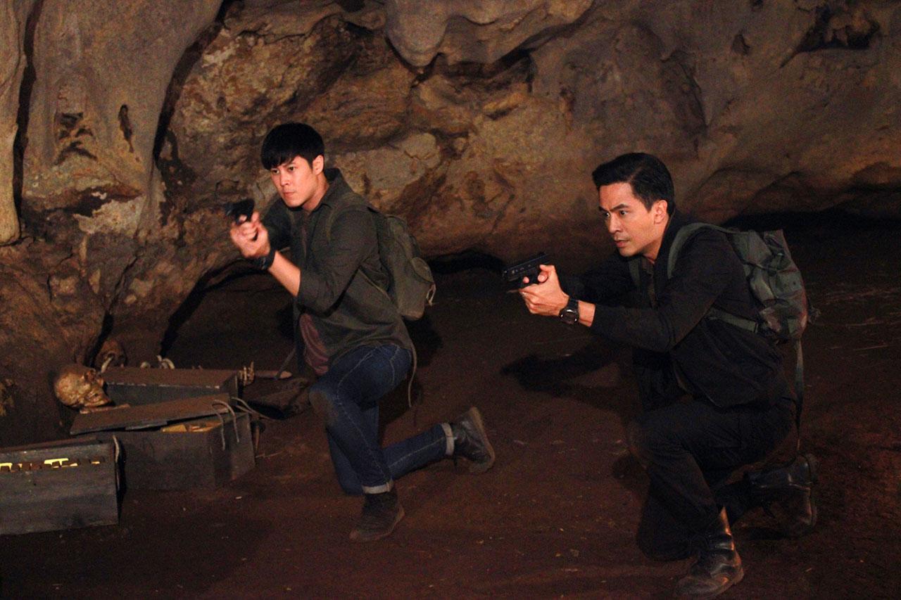 สมบัติมหาเฮง ตอนจบ ขณะที่กลุ่มของ “เมธี” (สันติราษฎร์ กุลนพเกียรติ) กำลังยิงปะทะกับ “ย่านอ่อง” (ปราปต์ปฎล สุวรรณบาง) และ “ฮิโร่” (กษาปณ์ จำปาดิบ) อยู่นั้น วิญญาณของ “พรานทนง” (เพชรฎี ศรีฤกษ์) กับ “ชิเบะ” (พิพัฒน์พล โกมารทัต) และเหล่าทหารญี่ปุ่นก็ได้ปรากฏตัวขึ้น พวกเขาเข้าต่อสู้กับย่านอ่องและฮิโร่อย่างดุเดือด เพื่อปกป้องสมบัติของชาติและไม่ยอมให้ใครนำออกไปได้ พรานทนงประกาศกร้าวว่าเขาจะไม่ยอมให้ลูกหลานต้องเป็นอะไรไปอย่างแน่นอน ธีและทุกคนได้แต่ยืนมองการเข่นฆ่ากันอย่างนองเลือด