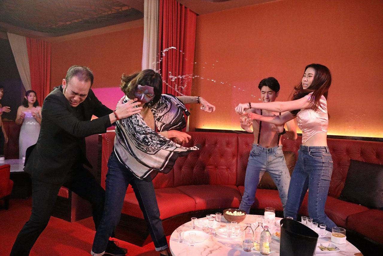 เนื่องจาก 2 สาวต้องตบกัน ดังนั้น จึงต้องวางบล็อกกิ้งให้ดี เมื่อพร้อมก็ถ่ายจริงทันที เริ่มด้วย ปังปอนด์ มาในมาดหนุ่มบาร์โฮสต์ถอดเสื้ออวดหุ่นเซ็กซี่นั่งอยู่กับ วีวี่ พูดคุยคลอเคลียกันอย่างออกรส จังหวะนั้น สายป่าน ก็เข้ามาเห็นและไม่พอใจเพราะได้นัดไว้ก่อนก็เลยเข้าไปโวยวายใส่ วีวี่ ทันทีที่มาปาดหน้าแบบนี้