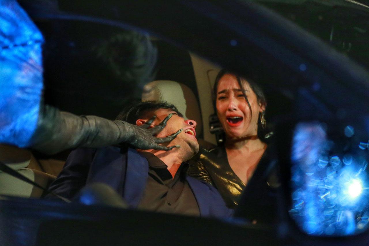 เบื้องหลังฉากนี้ยกกองกันไปถ่ายกันตั้งแต่หัวค่ำ จนเกือบถึงรุ่งเช้าอีกวัน เพราะเป็นฉากยาวๆ ที่ต้องแต่งเอฟเฟกต์เปรตนักแสดง ทัช กับ แก้ว อภิรดี และยังต้องใช้เทคนิคการถ่ายทำหลายขั้นตอนกว่าจะเป็นเปรตตัวสูงที่น่ากลัว ซึ่งฉากนี้ โม กับแอนด์ดรูว์ต้องเข้าฉากกับเปรตทั้งคู่ ซึ่งเจ้าตัวบอกน่ากลัวจริง ไหนจะบรรยากาศที่ฝนตกพรำๆ ของศาลายาที่เงียบสงัด และยังร่างเปรตที่แต่งได้น่ากลัว จนขนาดตอนเล่นที่จะต้องเจอหลอกหลอนก็เล่นได้จริงกลัวจริงไปเลย