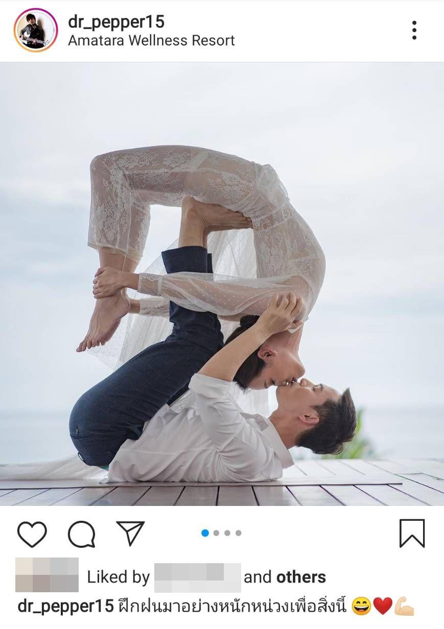 โดย เปปเปอร์ UHT โพสต์ภาพพรีเวดดิ้งคู่กับแฟนสาว มีทั้งภาพคู่กันแบบปกติ รวมไปถึงภาพที่ทั้งคู่ม้วนตัวเล่นโยคะในชุดบ่าวสาว แต่ละท่าบอกเลยว่าต้องใช้ความแข็งแรงของร่างกายจริงๆ แต่ก็ยังมีชอตหวานจูบกันด้วย พร้อมทั้งเขียนแคปชั่น “ฝึกฝนมาอย่างหนักหน่วงเพื่อสิ่งนี้”