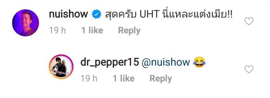 งานนี้นอกจากจะมีแฟนๆ คอมเมนต์บอกว่าเป็นภาพพรีเวดดิ้งที่เก๋มากแล้ว ยังมีคนในวงการบันเทิงเข้ามาคอมเมนต์อีกหลายคน อาทิ จอย ศิริลักษณ์ “สุดยอดค่ะ สวยงามมาก”, หนุ่ย พงศ์สุข “สุดครับ UHT นี่แหละแต่งเมีย!!” ฯลฯ