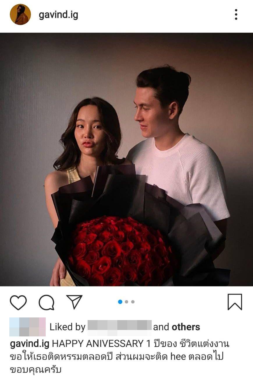 ล่าสุด กวินท์ โพสต์ภาพคู่กับ ปุ้มปุ้ย และดอกกุหลาบแดงช่อใหญ่ พร้อมทั้งเขียนแคปชั่นสุดพีคว่า “HAPPY ANNIVERSARY 1 ปีของ ชีวิตแต่งงาน ขอให้เธอติดหรรมตลอดปี ส่วนผมจะติด hee ตลอดไป ขอบคุณครับ”
