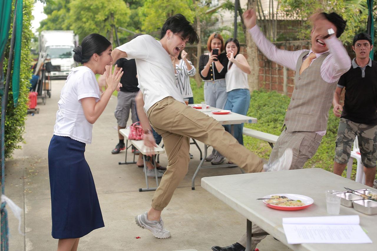 ในฉากนี้ ยกกองไปถ่ายทำกันที่ Acts Studio บรรยากาศค่อนข้างร้อน แต่ไม่ร้อนแรงเท่าฉากที่กำลังจะถ่าย เพราะ เก้า จะต้องประเคนหมัดใส่ นิ้กกี้ ด้วยอารมณ์หึง 7.0 ริกเตอร์ทีเดียว เพราะหวง ก้อย แหม!สวยจริงๆ ซึ่งก่อนถ่ายจริง ผู้กำกับฝีมือเฉียบ ติ๊ก วศินี คุณะนิติสาร ก็ติวอย่างหนักเพื่อให้สมจริงสมจัง และเพื่อไม่ให้ดราม่ามากจนเกิน ไปนิกกี้ เลยจัดท่าหมุนเป็นลูกข่างหลัง เก้า ปล่อยหมัดใส่แบบจัดเต็ม เรียกว่า สร้างเสียงหัวเราะกันทั้งกอง