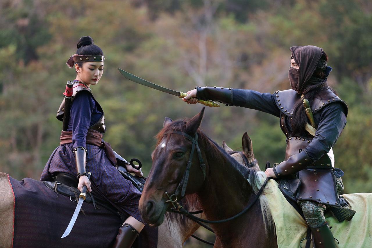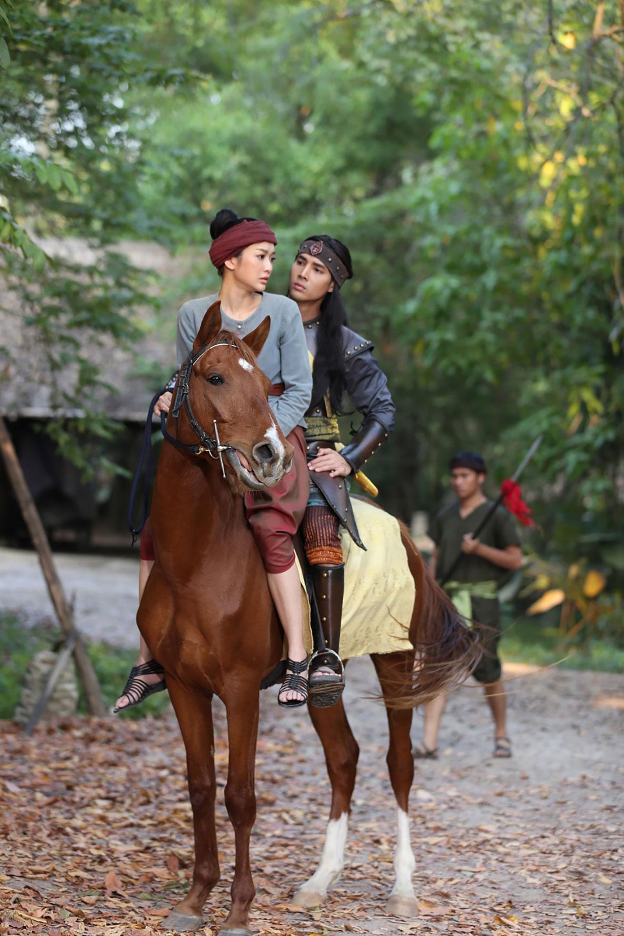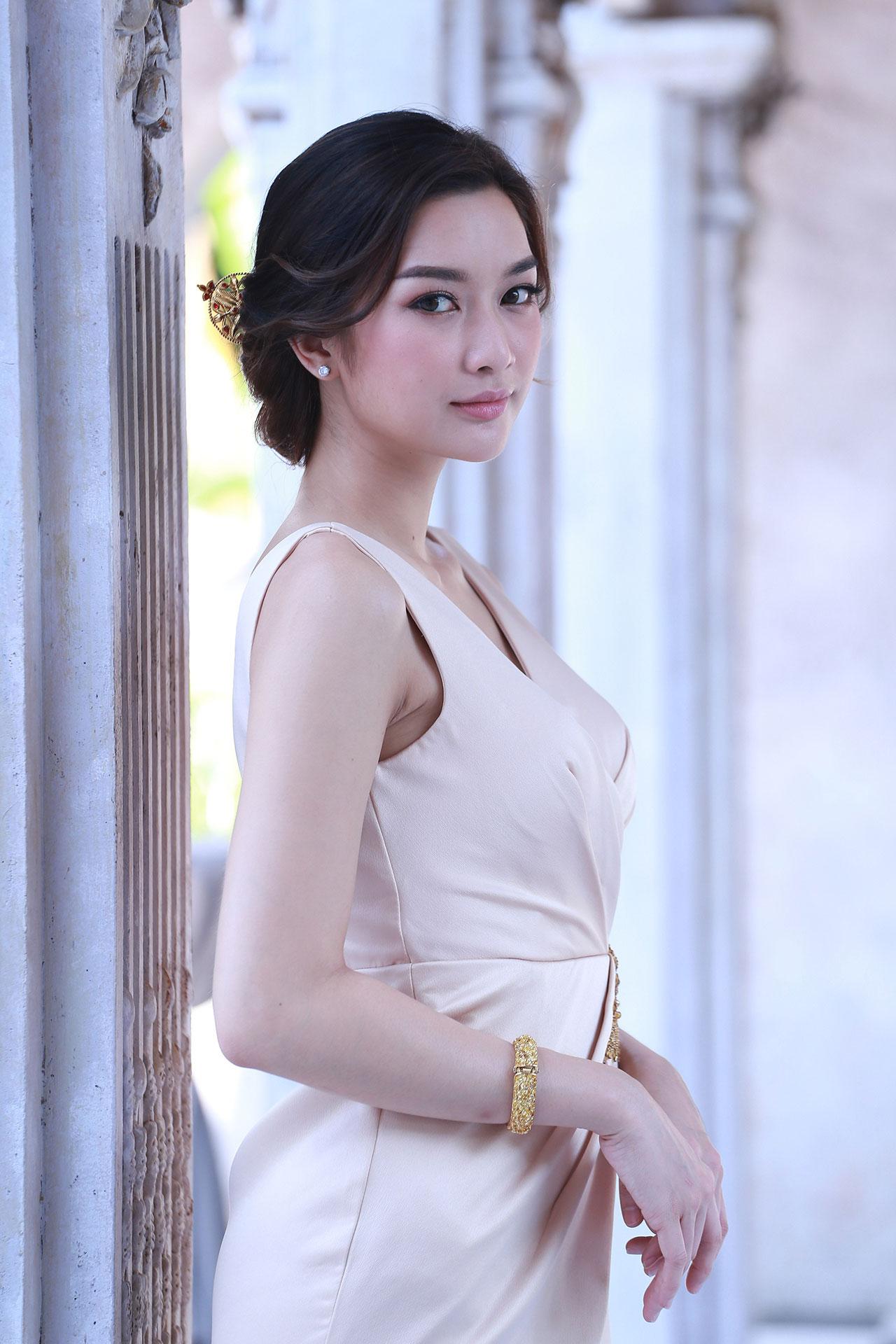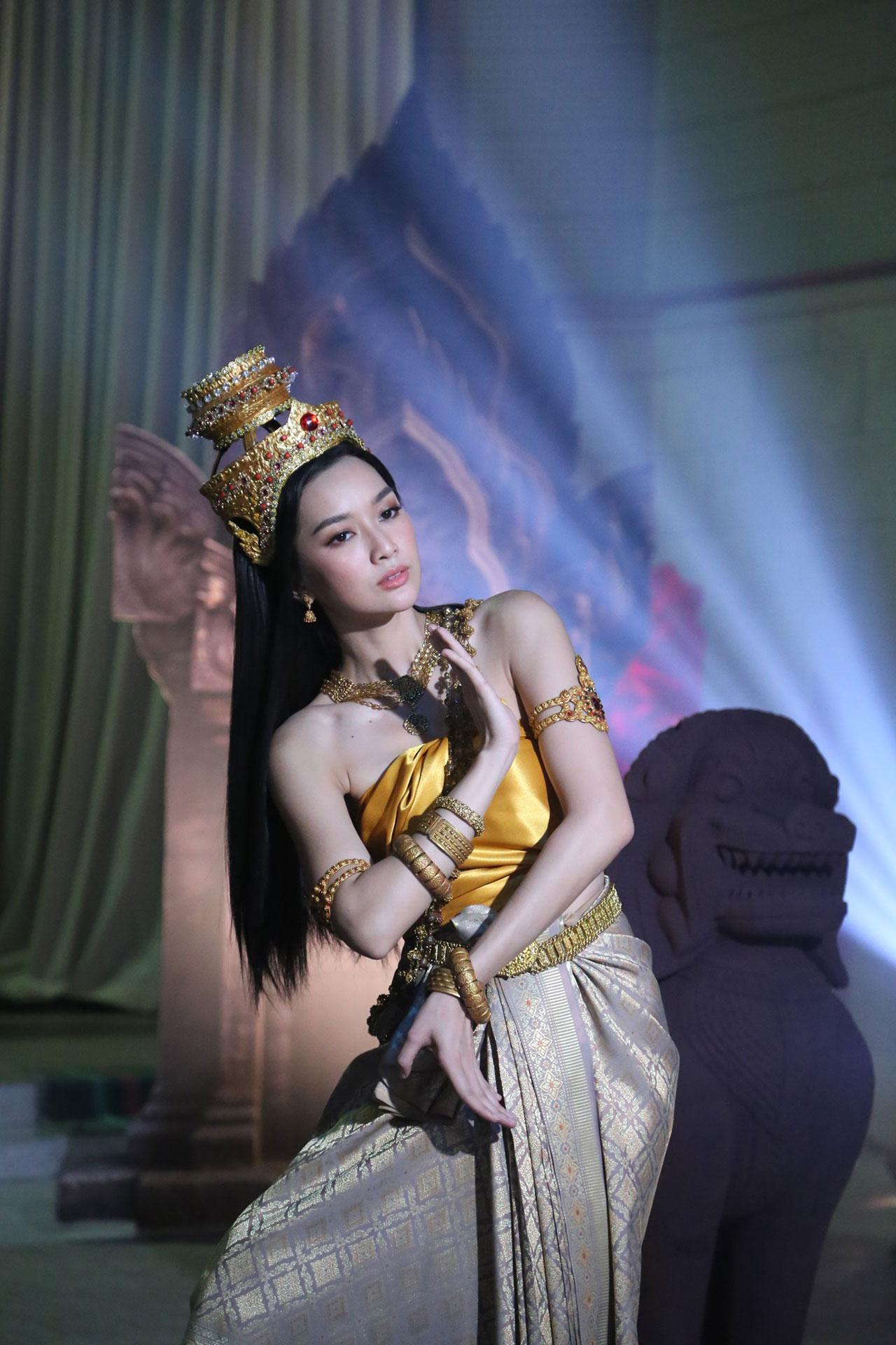 “บทในอดีตคือ ‘แพงทอง’ ส่วนปัจจุบันคือ ‘วิวรรณ’ ซึ่งบทในอดีตไม่ค่อยยาก แต่บทปัจจุบัน ตัววิวรรณเล่นยาก เพราะลุคปรับ 100% แต่งให้เป็นผู้ใหญ่ ดูโตขึ้นมาก แต่พาร์ทอดีตจะมีความสวยงามด้วยชุด ต้องมวยผม เกล้าผมสูง เครื่องประดับเยอะ ใส่ลูกปัดหลายชั้น ได้แต่งหลายชุดมาก ทั้งชุดนางรำ ซึ่งเครื่องหัวสวยมาก แต่บีบหัวมาก (หัวเราะ) รำไป ก็เกร็งไป ก่อนเปิดกล้อง ไปเรียนเยอะมาก ทั้งรำ ขี่ม้า ฟันดาบ เรื่องการรำ จริงๆ ก็ไม่ยาก ถ้าแค่รำอย่างเดียว แต่ในเรื่องต้องรำไปด้วย ร้องไห้ไปด้วย อารมณ์ต้องมาด้วย จำท่าด้วย ก็กดดันพอสมควร เราก็ซ้อมเต็มที่ แต่พอร่างกายเริ่มจำ ทุกอย่างก็ไปได้สวยค่ะ