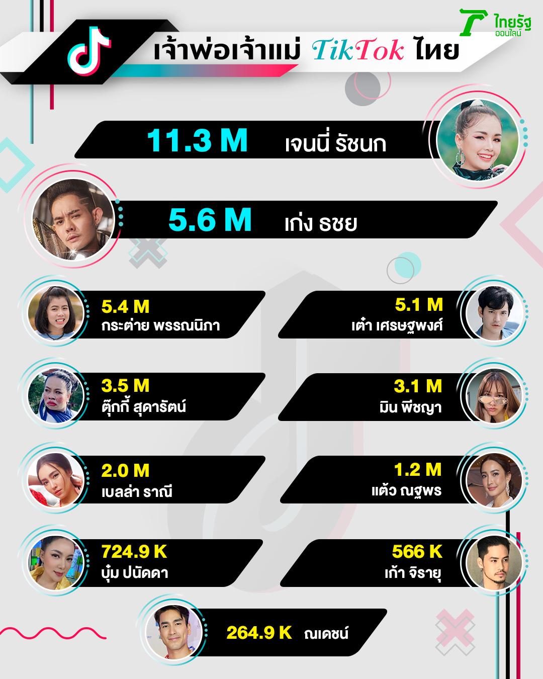 ใครยอดฟอลโลว์ติ๊กต๊อก TikTok เยอะสุด รีบไปดูกันเลย เริ่มกันที่ 1 เป็นนักร้องสาว เจนนี่ รัชนก สุวรรณเกตุ janeydm ยอดคนตามมากถึง 11.3 ล้านคน
