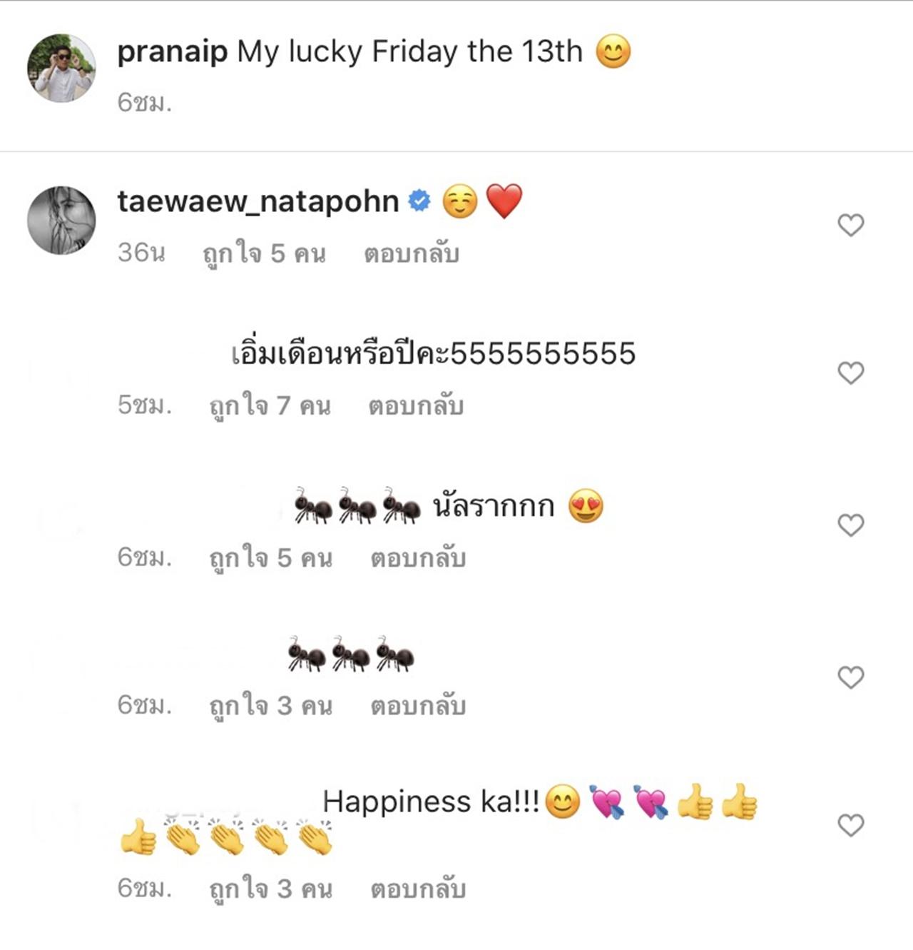 ก่อนที่ฝ่ายชายจะโพสต์รูปคู่กับแฟนสาว แต้ว ณฐพร ในไอจีสตอรี่ของตัวเองพร้อมแคปชั่นว่า "My lucky Friday the 13th" ก่อนจะถูกแฟนๆ เข้ามาแซวในความหวานของทั้งคู่ และถามว่าเป็นการฉลองครบรอบเดือนหรือปีอีกด้วย