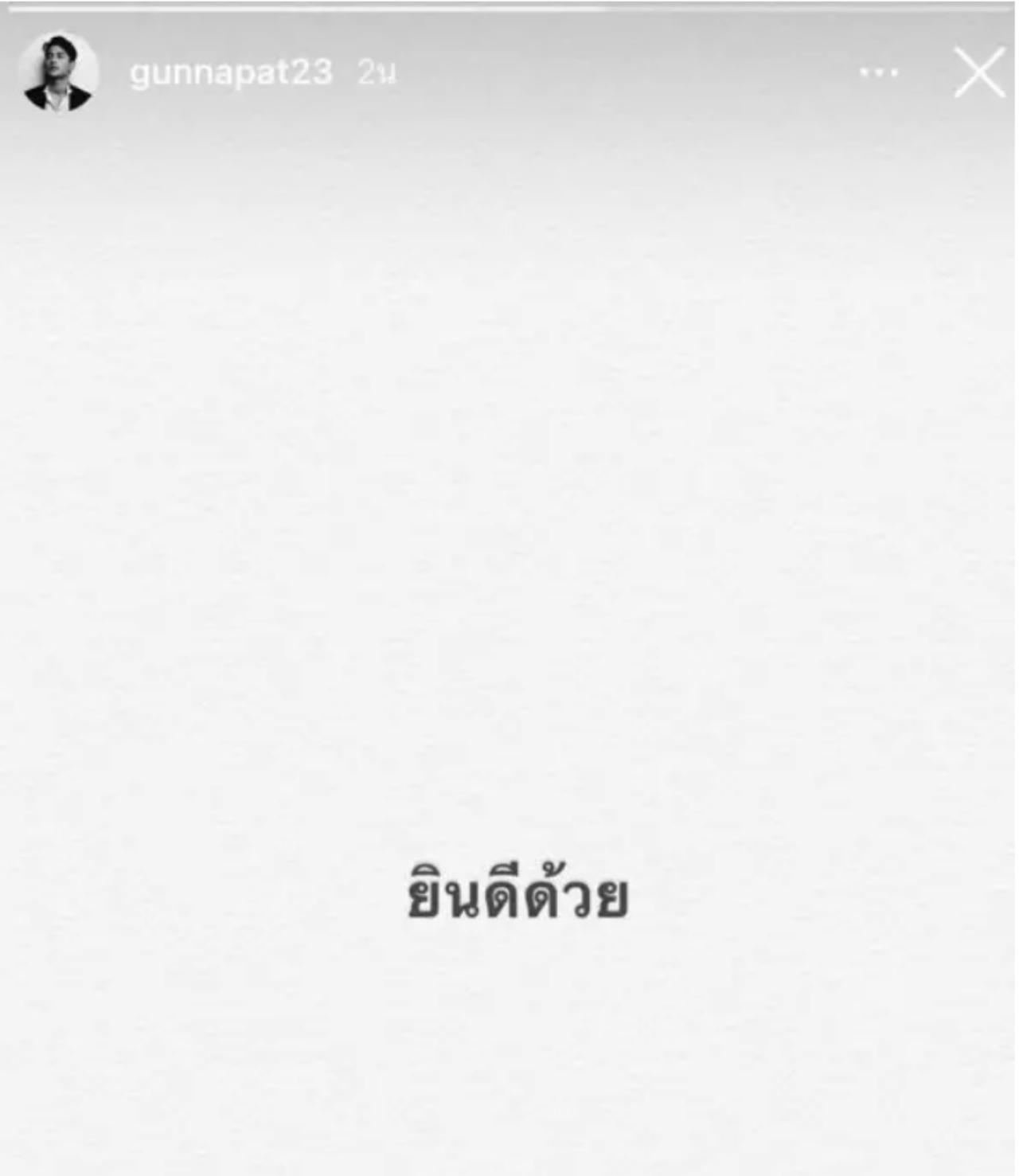 หลังจากที่นักร้องหนุ่ม กัน นภัทร อินทร์ใจเอื้อ และนางเอกสาว มารี เบรินเนอร์ เลิกรากันไป และต่างฝ่ายต่างมูฟออนไปใช้ชีวิตตัวเอง เมื่อไม่กี่วันที่ผ่านมา นักร้องหนุ่มได้ลงไอจีสตอรี่คำว่า “ยินดีด้วย” งานนี้จึงทำให้ถูกโยงว่าสื่อถึงอดีตคนรักที่มีข่าวถูกไฮโซหนุ่มตามจีบ ล่าสุดหนุ่มกันได้ออกมาเผยถึงเรื่องนี้ว่า