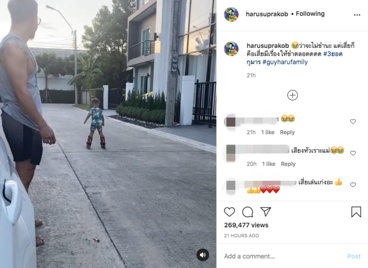 เป็นครอบครัวที่น่ารักมาก สำหรับบ้านของ กาย รัชชานนท์ กับ ฮารุ สุประกอบ พร้อมด้วยลูกๆ ทั้ง 3 คน น้องคิริน น้องไนร่า และน้องเอเดน ซึ่งลูกๆ แต่ละคนนั้นมีสไตล์เป็นของตัวเอง ล่าสุด แม่ฮารุ ได้เผยคลิปที่น้องเล็กสุดท้อง เอเดน กำลังหัดเล่นรองเท้าสเก็ตแบบล้มลุกคลุกคลานอยู่ที่ถนนหน้าบ้าน พร้อมกับเขียนว่า "ว่าจะไม่ขำนะ แต่เสี่ยก็คือเสี่ย มีเรื่องให้ขำตลอดดดด #3ยอดกุมาร #guyharufamily"