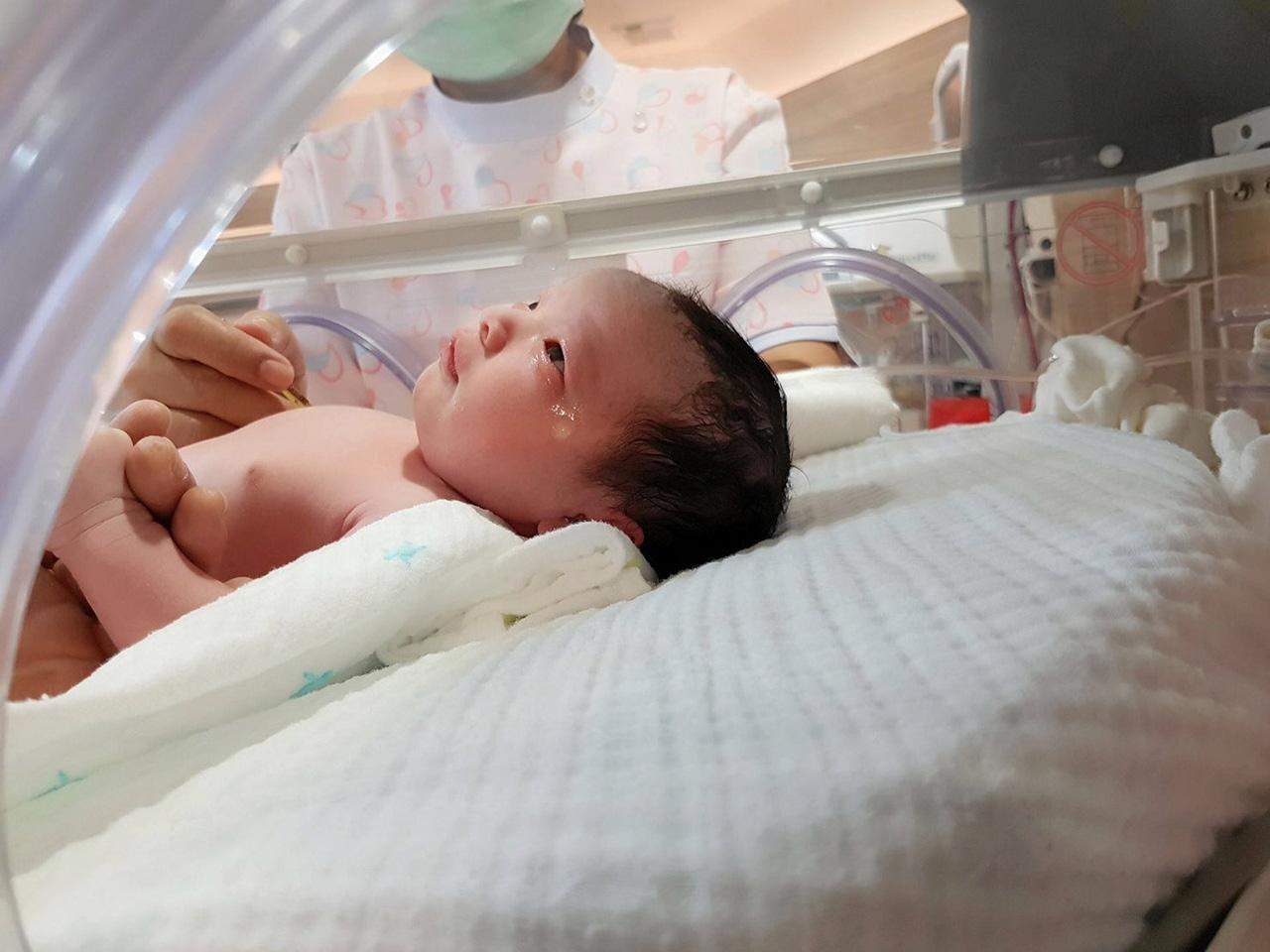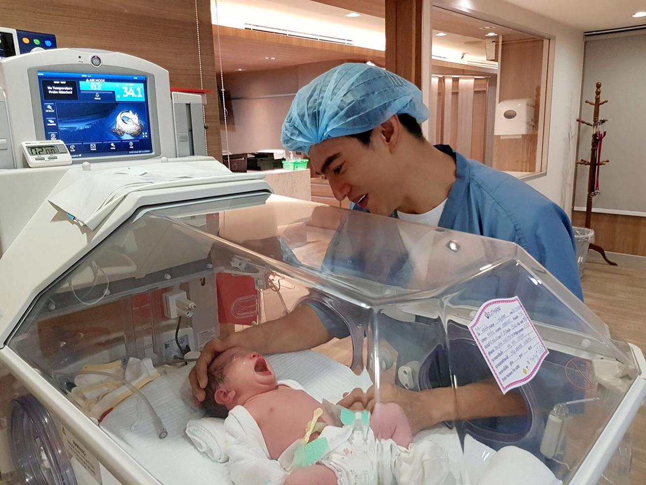พอได้เห็นหน้าลูกสาวตัวน้อยตื่นเต้นขนาดไหน ต๊ะเผยว่า “ตื่นเต้นมากๆครับ แต่ก็โชคดีหน่อยได้ดูน้องมาตลอดช่วง 6 เดือนแรกๆ เดือนละ 2 ครั้ง จนช่วงท้ายๆดูเดือนละครั้ง จนเข้าเดือนที่ 8 คุณหมอนัดบ่อยหน่อยอาทิตย์ละ 2 ครั้ง อาทิตย์ต่ออาทิตย์ เห็นหน้าลูกมาโดยตลอด วันนี้เป็นครั้งแรกที่เจอกันตัวเป็นๆ ครั้งแรกที่ดูคืออึ้ง นี่ลูกเราเหรอ สิ่งมีชีวิตตัวเล็กๆสัมผัสแรกที่ได้ยินคือเสียงร้องก่อน ร้องแอ๊ะก่อน พอออกจากท้องคุณหมอเด็กต้องทำให้ร้องก่อน อุ้ย! เหมือนเป็ดร้องเลย (หัวเราะ) เสียงแหบลุ้นให้เสียงเหมือนเราจนเอาลูกมาถ่ายรูปกับพ่อกับแม่ปุ๊บก็ส่งน้องไปอีกชั้นเข้าตู้อบก่อน พอตามไปได้จับจริงๆ น้ำตาไหล น้ำตาร่วงเลย จริงๆมันไหลตั้งแต่ตอนที่คิดว่าเค้าจะออกมาแล้ว คิดเล่นๆตั้งแต่เมื่อคืนเราจะเจออะไรบ้าง แค่นั้นน้ำตาไหลแล้ว”