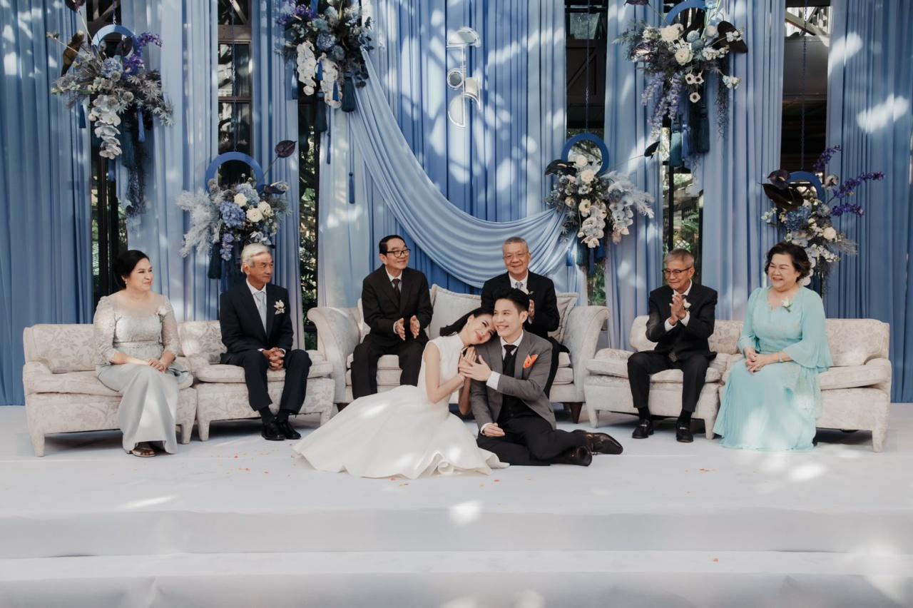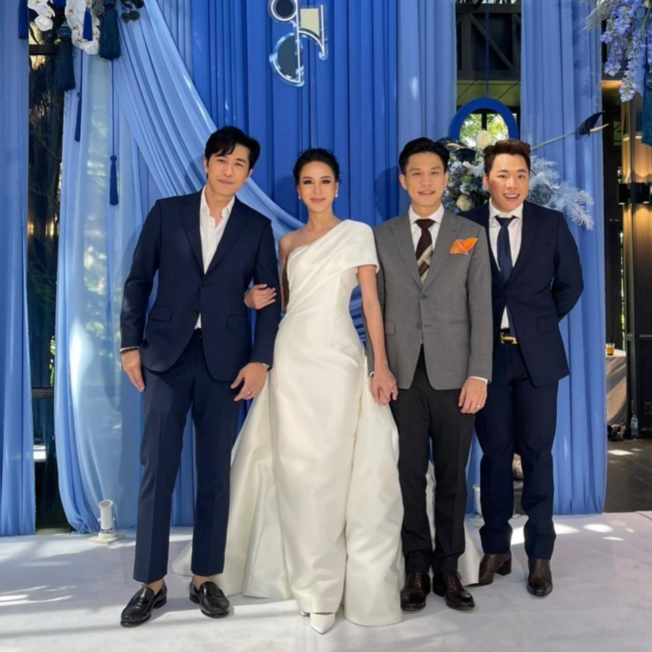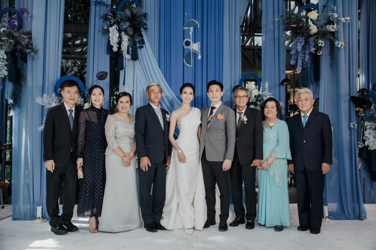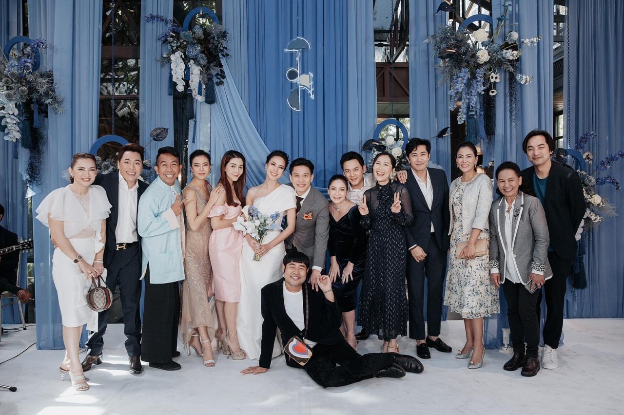 มีครอบครัว ญาติสนิท เพื่อนๆ พี่ๆ ทั้งในและนอกวงการบันเทิงที่เคารพนับถือมาร่วมแสดงความยินดีกับเจ้าบ่าวเจ้าสาวป้ายแดงกันเป็นจำนวนมาก อาทิ คุณนิด อรพรรณ วัชรพล, คุณประวิทย์ มาลีนนท์, พี่ฉอด สายทิพย์, เอ ศุภชัย, หนุ่ม กรรชัย, มดดำ คชาภา, เชอรี่ เข็มอัปสร, วุ้นเส้น วิริฒิพา, คริส หอวัง ฯลฯ บรรยากาศภายในงานมาในธีมไชนีส โมเดิร์น โทนสีฟ้า-น้ำเงิน เรียบง่ายแต่เต็มไปด้วยความอบอุ่น หอมหวนไปด้วยความรัก