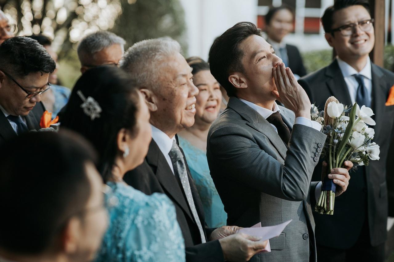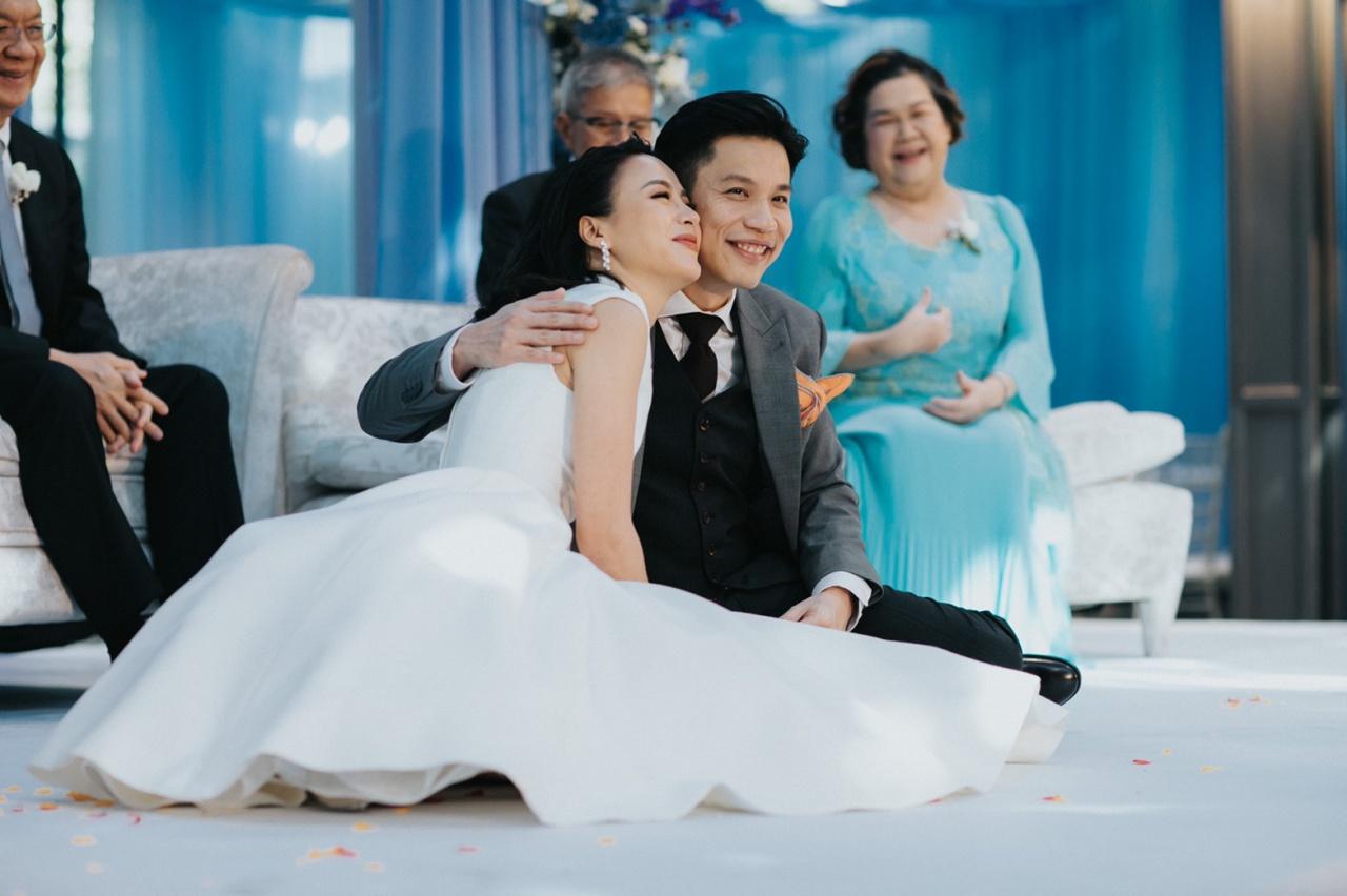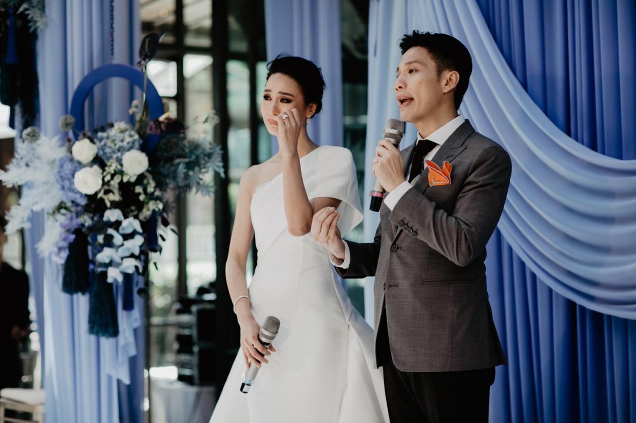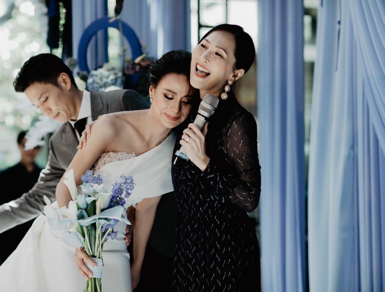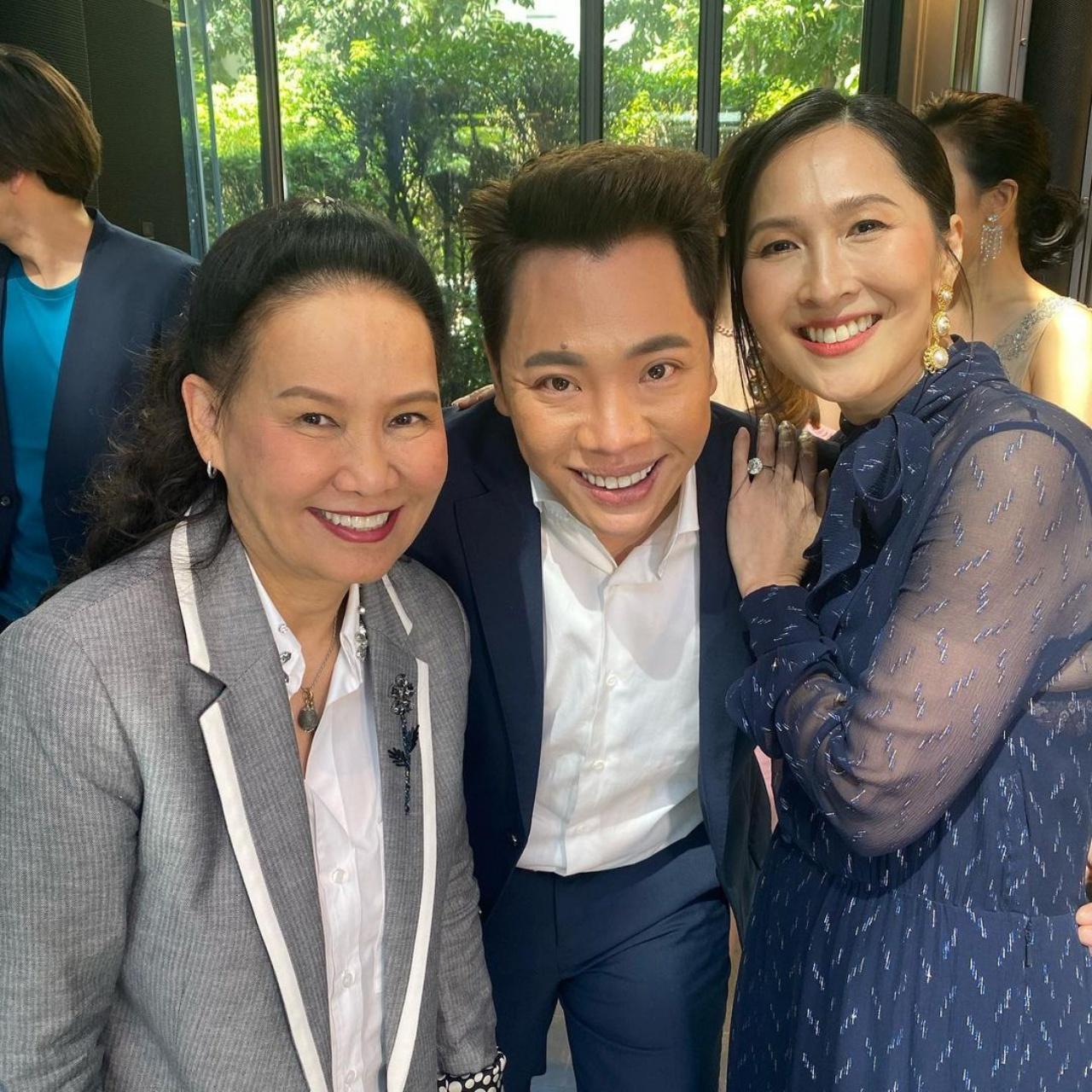 มีครอบครัว ญาติสนิท เพื่อนๆ พี่ๆ ทั้งในและนอกวงการบันเทิงที่เคารพนับถือมาร่วมแสดงความยินดีกับเจ้าบ่าวเจ้าสาวป้ายแดงกันเป็นจำนวนมาก อาทิ คุณนิด อรพรรณ วัชรพล, คุณประวิทย์ มาลีนนท์, พี่ฉอด สายทิพย์, เอ ศุภชัย, หนุ่ม กรรชัย, มดดำ คชาภา, เชอรี่ เข็มอัปสร, วุ้นเส้น วิริฒิพา, คริส หอวัง ฯลฯ บรรยากาศภายในงานมาในธีมไชนีส โมเดิร์น โทนสีฟ้า-น้ำเงิน เรียบง่ายแต่เต็มไปด้วยความอบอุ่น หอมหวนไปด้วยความรัก