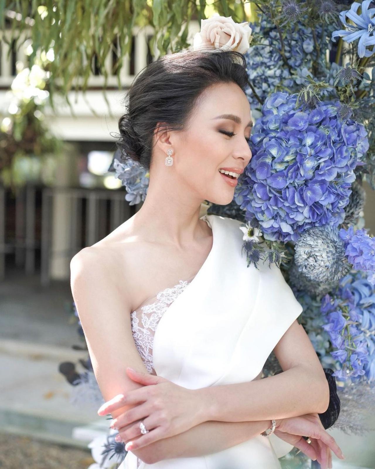 โดยในช่วงเช้าถือฤกษ์งามยามดีจัดขบวนขันหมากสู่ขอเจ้าสาว โดยเจ้าบ่าวมาในชุดสูทสีเทา พร้อมด้วยญาติผู้ใหญ่และเพื่อนๆ ร่วมฝ่าประตูเงิน ประตูทอง ไปพบเจ้าสาว ซึ่ง รถเมล์ มาในชุดสีขาวที่ดูเรียบแต่หรูสุดๆ จากแบรนด์ POEM ในสไตล์จีนที่มีความโมเดิร์น สวยสง่า จากนั้นเข้าสู่พิธีสวมแหวนหมั้นและพิธียกน้ำชา