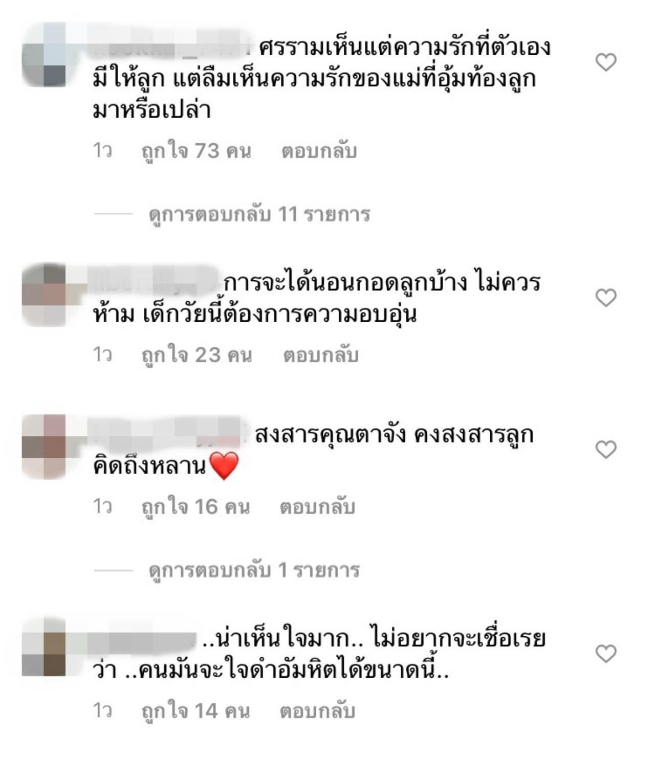 ซึ่งหลายคนที่ติดตาม ติ๊ก ต่างก็เข้ามาเป็นกำลังใจให้ และบางคนก็เกิดอารมณ์เดือดทันที พร้อมกับฉะไปถึง หนุ่ม ศรราม ว่าทำไมคนเป็นแม่จะกลับไปหาลูก ไปกอดลูกบ้างไม่ได้เหรอ, ทำไมถึงเห็นแก่ตัว ไม่ให้แม่กับลูกได้เจอกัน นอนกอดกันบ้างไม่ได้, ถึงพ่อจะหมดรักแม่ แต่ก็ควรให้แม่เจอลูกบ้าง