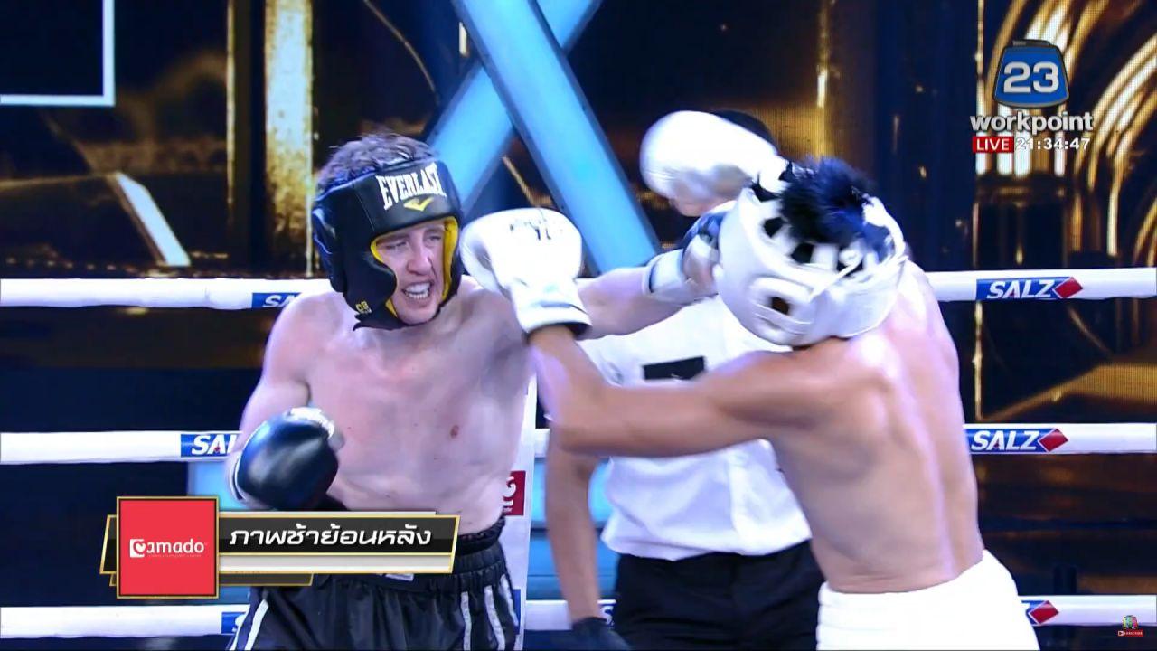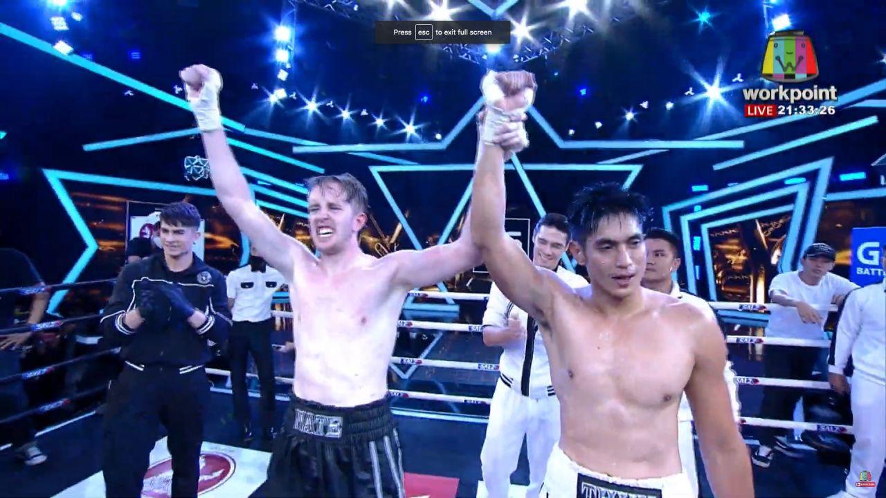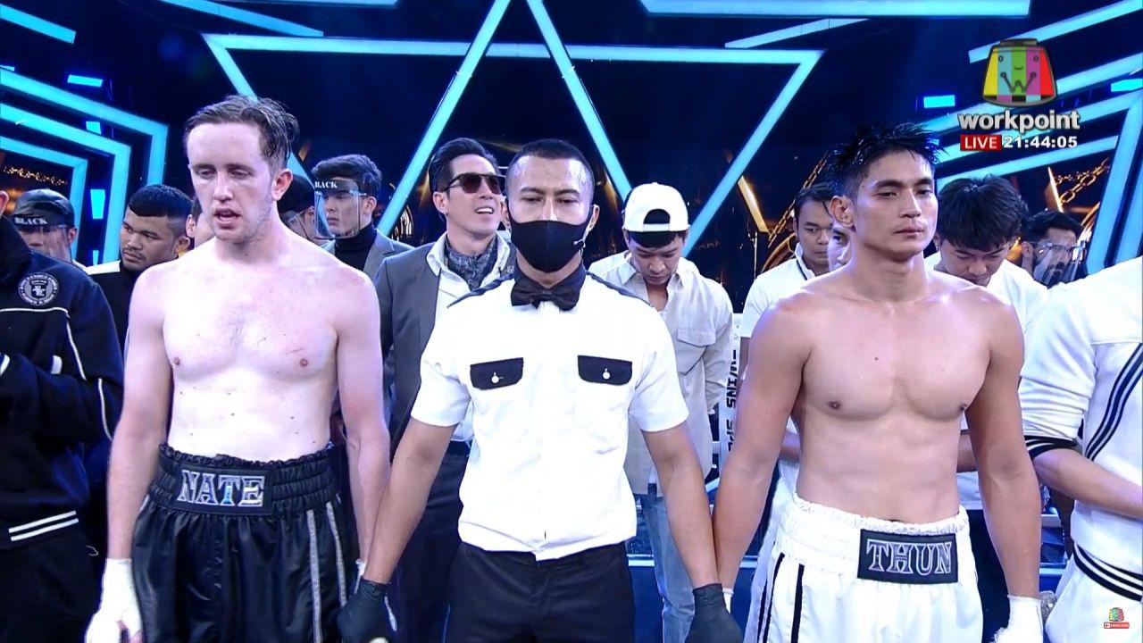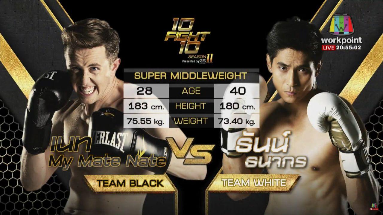เป็นอีกหนึ่งคู่ชกที่เดือดไม่แพ้คู่ที่ผ่านมา สำหรับ เนท My Mate Nate ยูทูบเบอร์ชื่อดัง ทีม Black และ ธันน์ ธนากร นักแสดงหนุ่มนักบู๊ ทีม White จากรายการมวยชื่อดัง "10 Fight 10" ทางช่องเวิร์คพอยท์ โดยทั้งคู่ขึ้นชกในรุ่นซุปเปอร์มิดเดิลเวท พิกัดน้ำหนักไม่เกิน 76.20 กิโลกรัม ซึ่งก่อนที่จะชกได้มีการชั่งน้ำหนัก โดย เนท ชั่งได้ 75.55 กก. และ ธันน์ ชั่งได้ 73.40 กก.