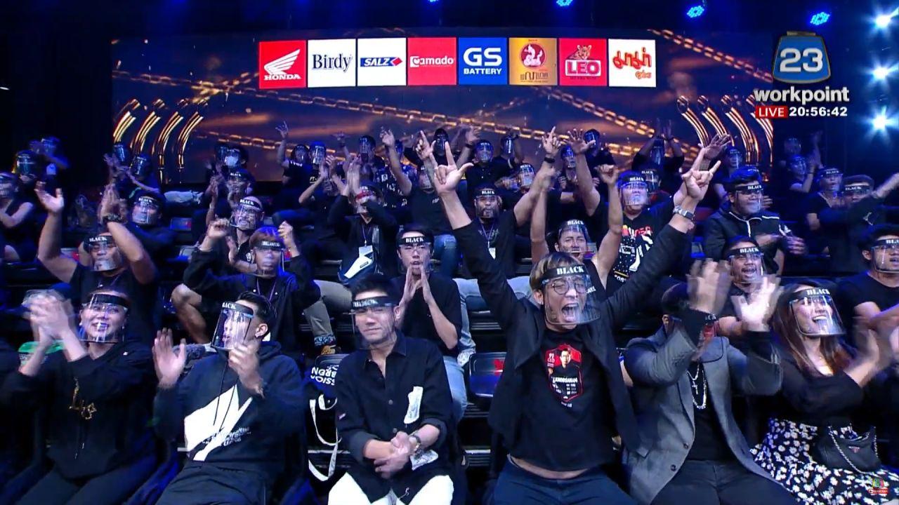 ในส่วนกองเชียร์ก็ถือว่าคึกคักไม่เบา เพราะนอกจากจะมีแฟนๆ ทั้งทีมไวท์และแบล็กมาเชียร์จนเต็มสนามแล้ว มีเหล่าคนดังมาให้กำลังใจมากมาย อาทิ ไก่ วรายุฑ, อานัส ฬาพานิช, ปุ้ย อรัญญา, เชน ณัฐวัฒน์, แพร พรรัมภา, ต่าย ชัชฎาภรณ์, กอล์ฟ กัญจน์, เจมส์ กิจเกษม, ซีดี กันต์ธีร์, ลีซอ ธีรเทพ, กำปั้น บาซู ฯลฯ รวมไปถึง ยุ้ย จีรนันท์ ภรรยาของธันน์ และลูกหมี แฟนสาวของเนท