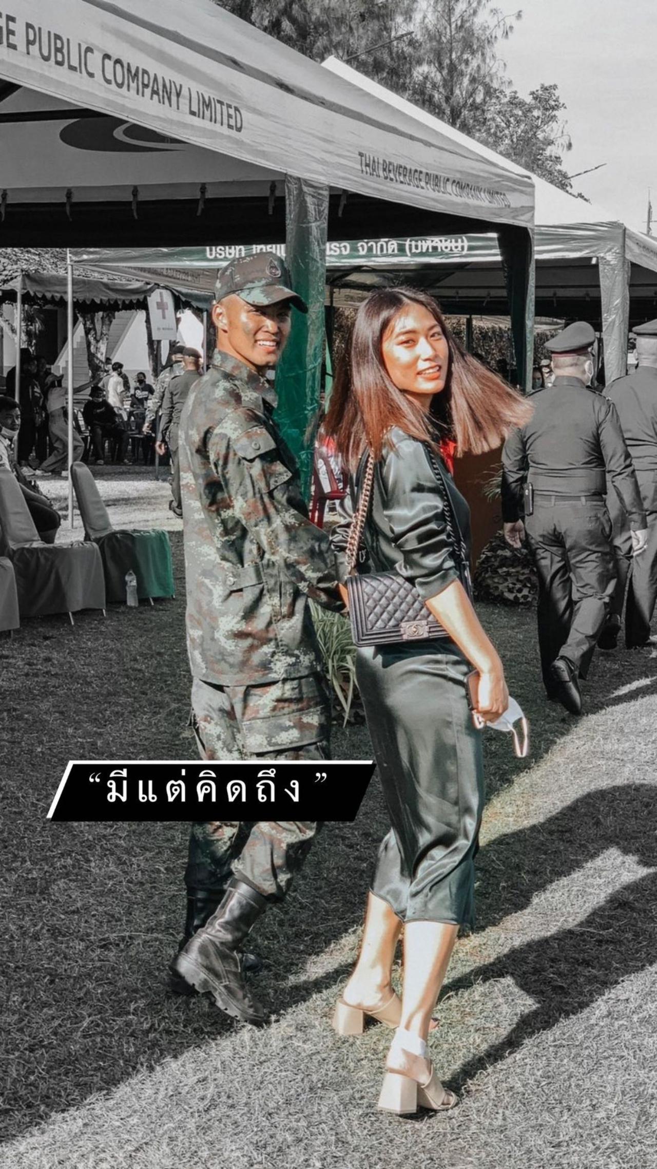 ซึ่งหลังจากที่ได้เจอกันครั้งแรก สาวเพลงได้โพสต์รูปและข้อความสุดซึ้งที่ฝ่ายชายเขียนให้ในระหว่างที่เข้าไปฝึกทหาร ผ่านทางอินสตาแกรมส่วนตัว ซึ่งสาวเพลงได้โพสต์ลงอวดความน่ารักของหนุ่มเป๊กให้ทุกคนได้ซึ้งไปด้วยกันว่า