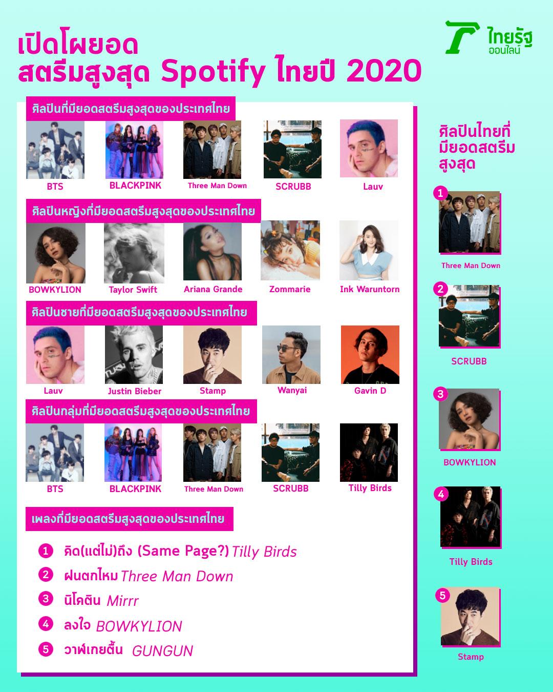 - ศิลปินไทยคนไหน? ติดอันดับยอดสตรีมสูงสุด Spotify ไทยปี 2020