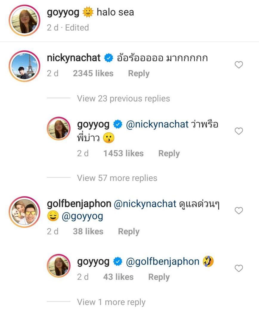 ต่อมาไม่นานก็มีโมเมนต์ให้จิ้นกันอีกแล้ว เมื่อหนุ่ม นิกกี้ ณฉัตร ที่ได้เห็นคลิปถึงกับต้องรีบมาคอมเมนต์ทันทีว่า "อ้อร้อ มากกกกก" งานนี้เจ้าของคลิปอย่างสาวก้อยก็ตอบกลับไปว่า “ว่าพรือพี่บ่าว”