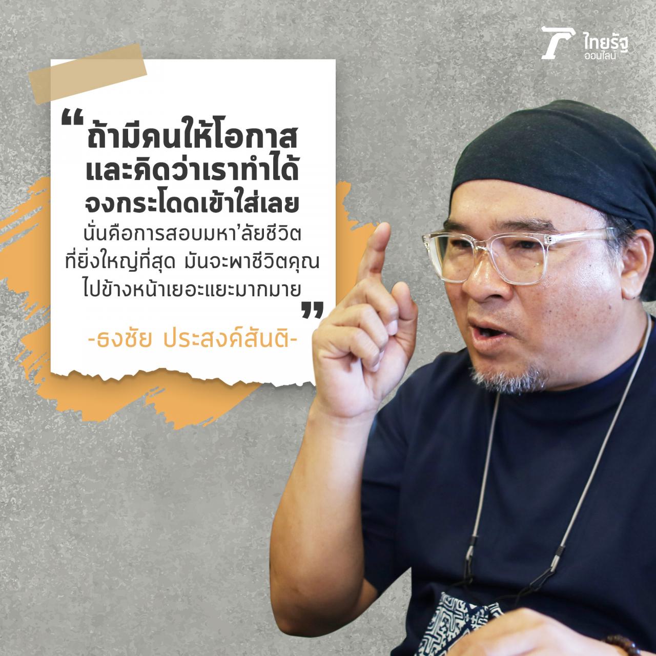 ไม่แปลกใจว่าทำไม ชีวิตของผู้ชายคนนี้ ธงชัย ประสงค์สันติ ถึงมีวันนี้ได้ วันที่เป็นแค่ตัวประกอบค่าตัวหลักร้อย จนกลายมาเป็นผู้กำกับที่มีชื่อเสียงทำเรตติ้งละครได้สูงลิบ แต่การที่จะมาอยู่ตรงนี้ไม่ใช่เรื่องง่าย ต้องพิสูจน์ฝีมือและได้รับโอกาสนั้นมา ซึ่งพี่ธงเล่าให้เราฟังถึงช่วงชีวิตที่เริ่มได้รับโอกาสดีๆ ว่า