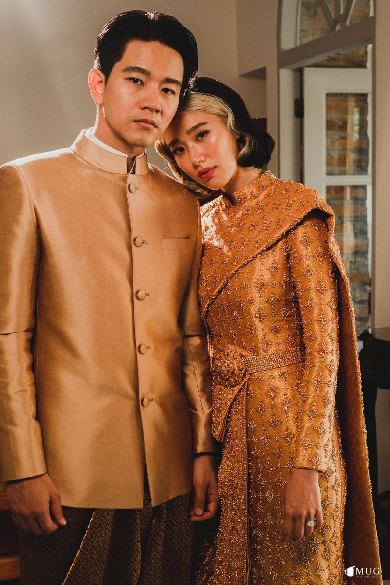 แต่โดยส่วนตัวเรารู้สึกว่าแก้วเป็นคนที่เจ๋งมาก ตั้งแต่แรกที่ไว้ผมยาว อยู่ดีๆ พอจะแต่งงานตัดผมสั้น เราก็เป็นคนตัดให้ พอเสร็จอยู่ไปสักพักหนึ่ง ย้อมผมดีไหม แล้วย้อมไม่ใช่ย้อมทั้งหัวด้วย ย้อมครึ่งนึง เราชอบมาก เราก็รู้สึกว่าครั้งเดียวในชีวิตเราอยากเห็นภาพนั้นมากๆ ภาพที่คุณผมครึ่งขาวครึ่งดำแล้วใส่ชุดไทยแบบเรียบๆ เรารู้สึกว่าเราชอบอยู่แล้ว เราสองคนชอบทำอะไรที่คนเขาไม่ทำกัน ไม่คาดคิดกัน เรารู้สึกสนุก”