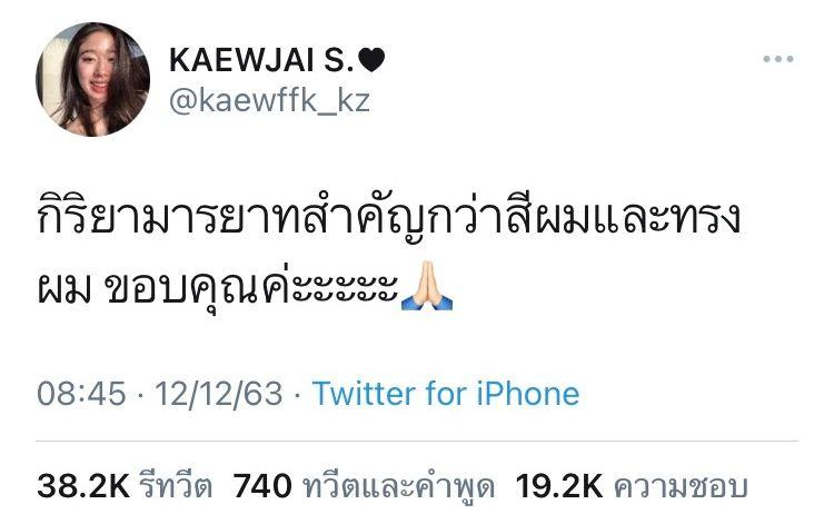 แก้วโพสต์ทวิตเตอร์ว่ากิริยามารยาทสำคัญกว่าสีผม?