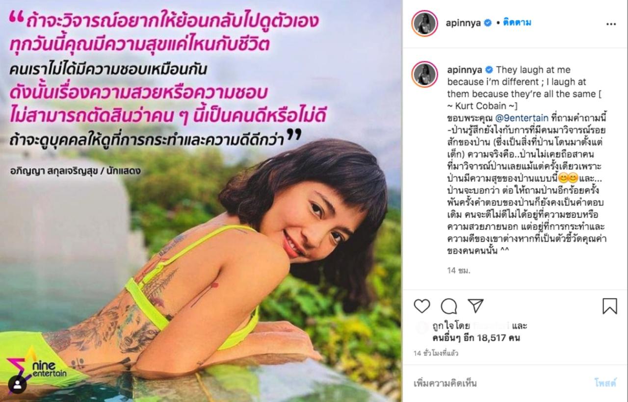 ล่าสุด สายป่าน ก็ได้โพสต์เรื่องนี้ผ่านอินสตาแกรม หลังให้สัมภาษณ์กับ Nine Entertain โดยเจ้าตัวบอกว่า ที่ผ่านมาไม่เคยถือสาคนวิจารณ์เลย เพราะตนเองมีความสุขแบบนี้ และยังบอกอีกว่า คนจะดีหรือไม่ดี ไม่ได้อยู่ที่ความสวย แต่อยู่ที่การกระทำและความดีต่างหาก