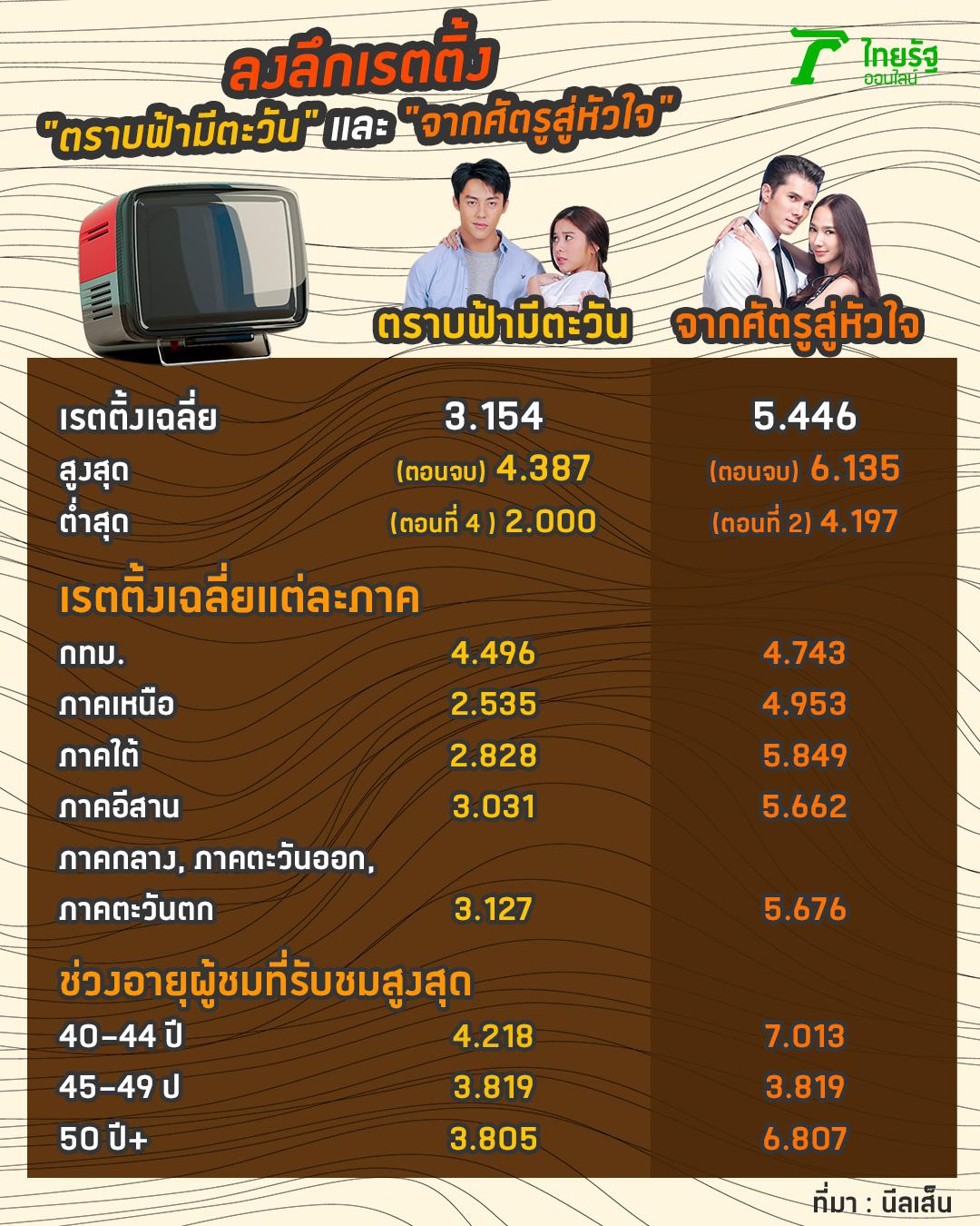 - เรตติ้ง "ตราบฟ้ามีตะวัน" และ "จากศัตรูสู่หัวใจ" ทางทีวีเป็นอย่างไร?