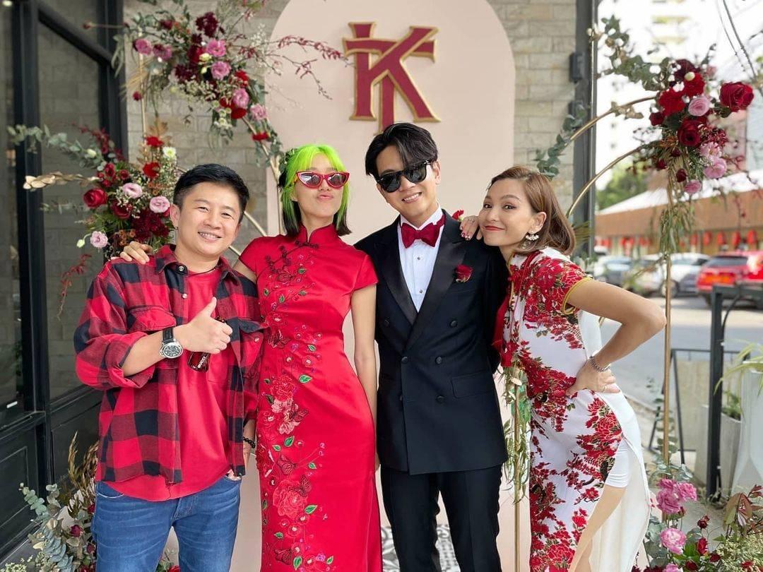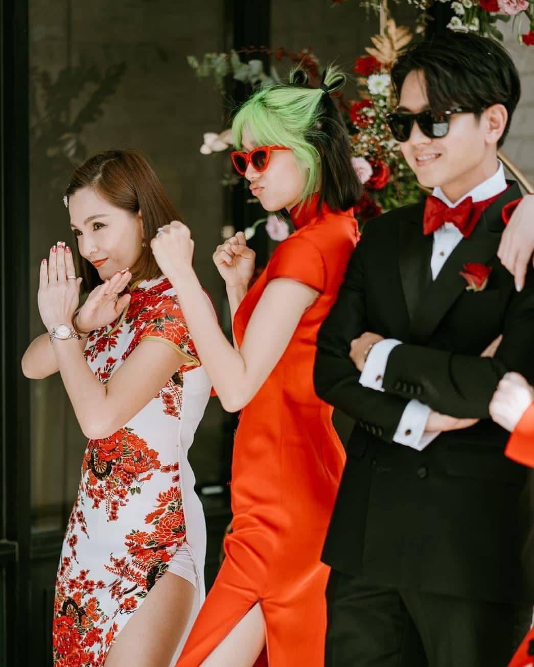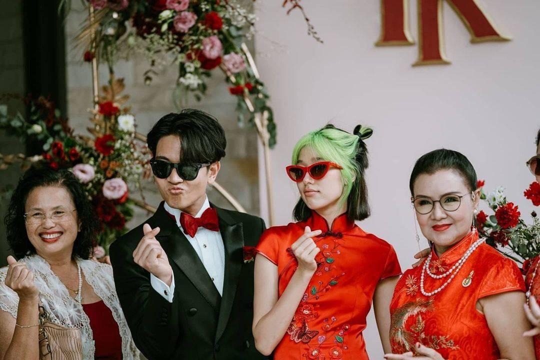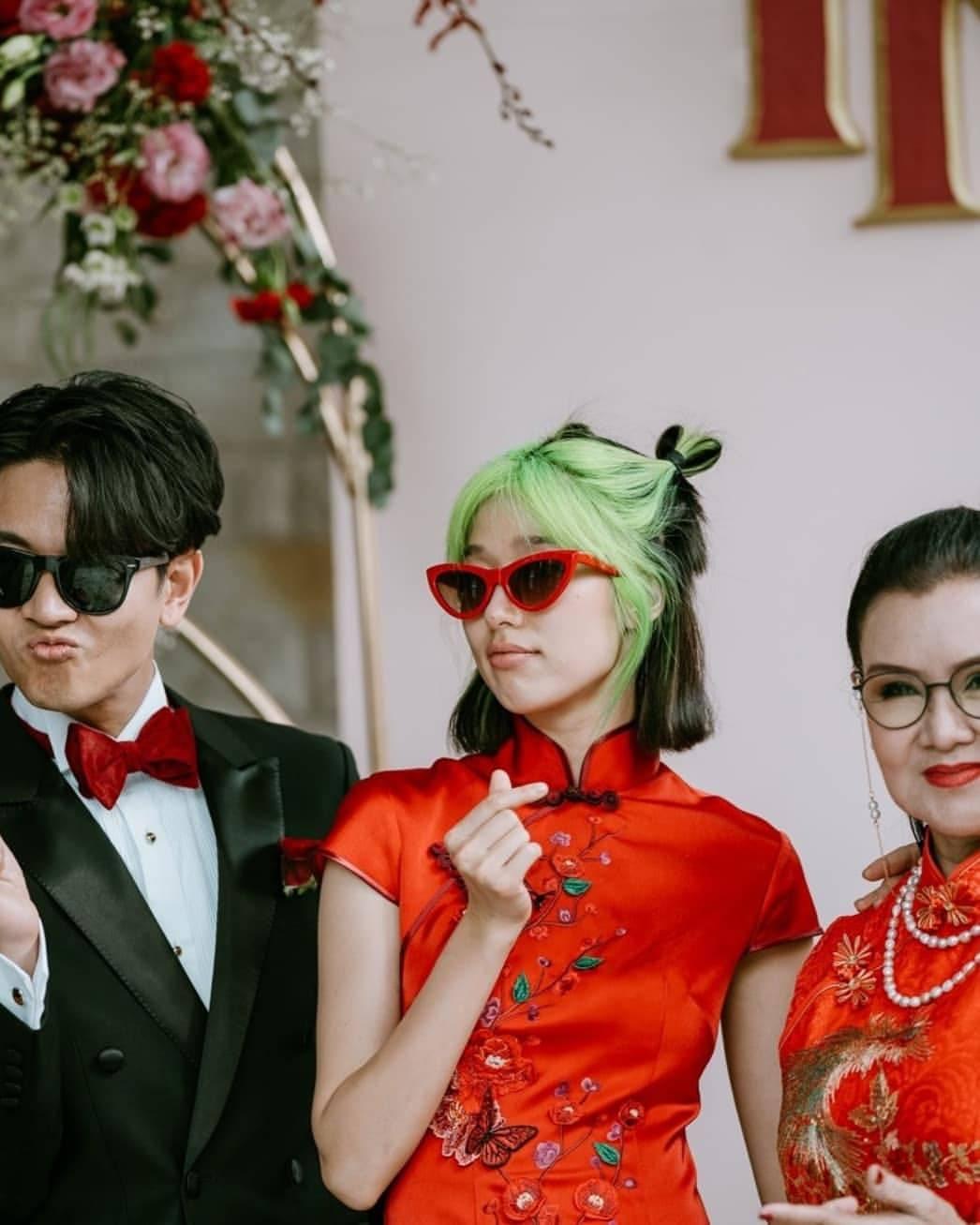 ด้านเจ้าสาวอย่างแก้วก็มาในชุดกี่เพ้าสีแดง แต่ที่สะดุดตาไม่แพ้ชุดเห็นจะเป็นผมสีเขียวนีออนสวยๆ ที่หนุ่มโทนี่เป็นคนทำให้ ดูแล้วสวยเก๋ไม่เบาเลยทีเดียว.