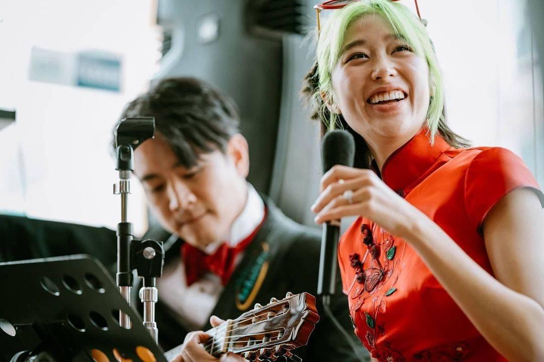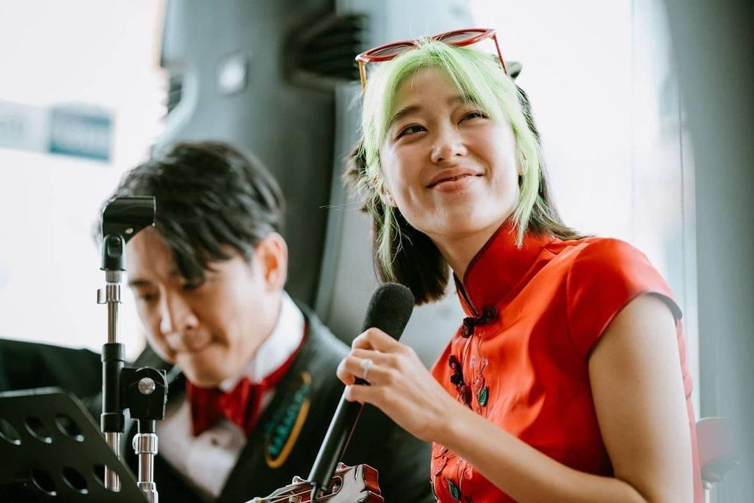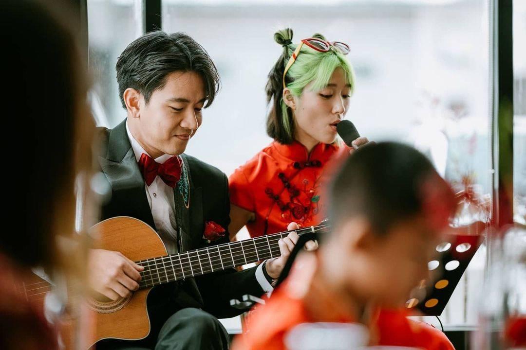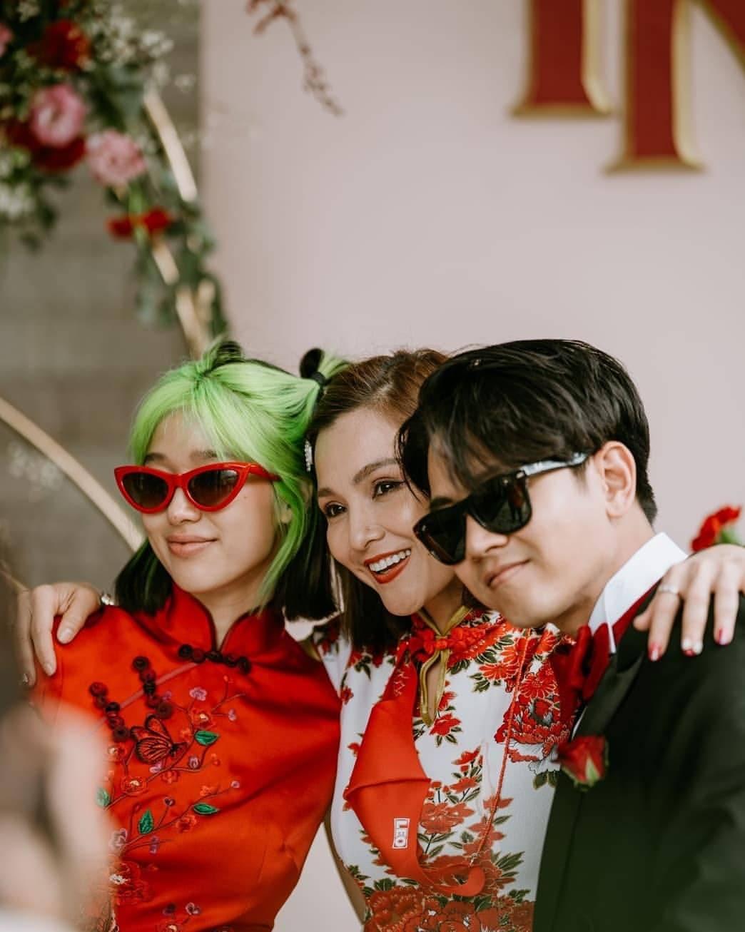 ด้านเจ้าสาวอย่างแก้วก็มาในชุดกี่เพ้าสีแดง แต่ที่สะดุดตาไม่แพ้ชุดเห็นจะเป็นผมสีเขียวนีออนสวยๆ ที่หนุ่มโทนี่เป็นคนทำให้ ดูแล้วสวยเก๋ไม่เบาเลยทีเดียว.