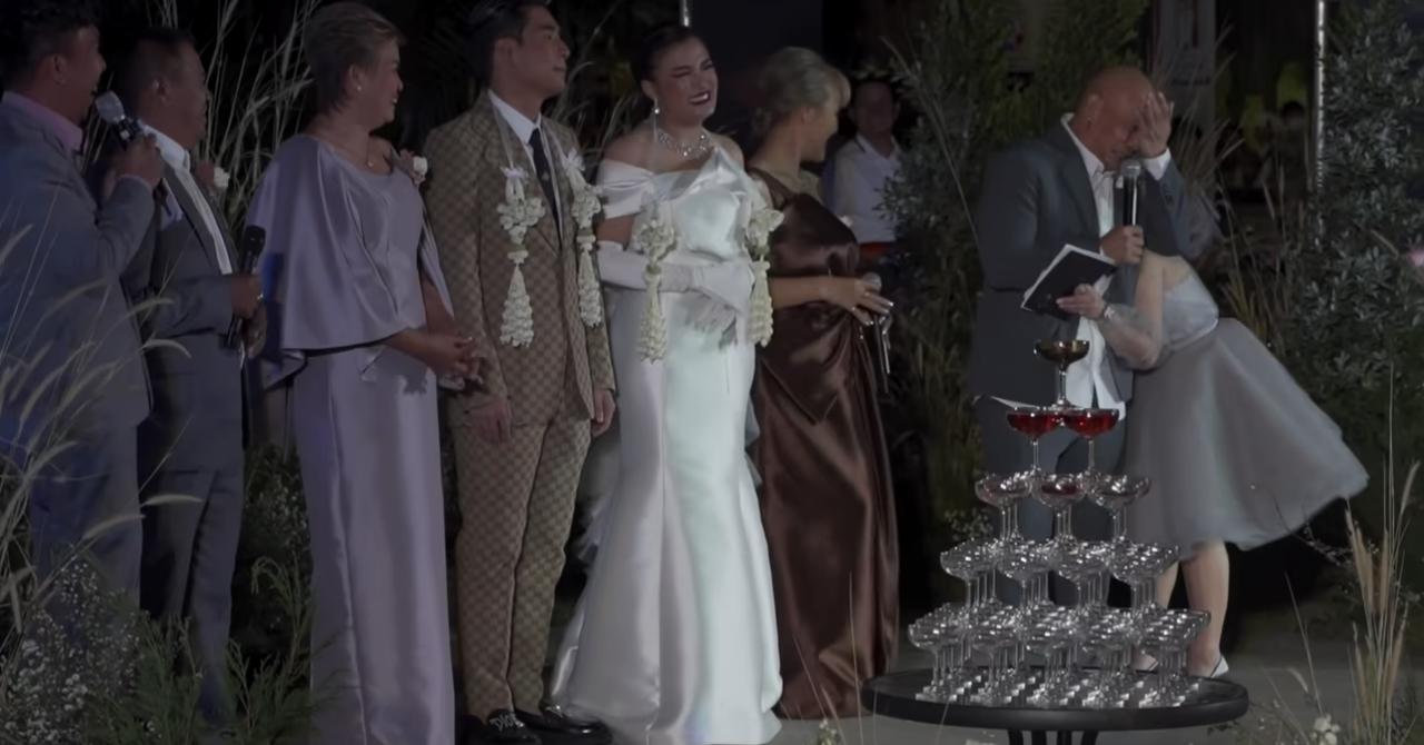 เขาเหมือนภรรยาผม เขาขยันทำมาหากิน ก็เลยชอบน้องโบว์ตรงนี้ ก็รักเหมือนลูกคนที่ 3 ของผม และยินดีต้อนรับมาเป็นลูกสะใภ้ในวันนี้และตลอดไปด้วย สิ่งที่ไม่ดีของพ่ออย่าจำ ให้จำในสิ่งที่ดีของพ่อ ขอให้รักกันมากๆ รักกันนานๆ รักกันตลอดไป”