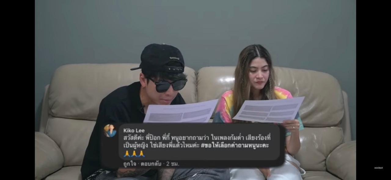แต่งานนี้ก็มีคนสงสัยและส่งคำถามมาถามหนุ่มป๊อกใน Q&A ถามตอบกับป๊อกกี้ ว่า “สวัสดีค่ะ พี่ป๊อก หนูอยากถามว่า ในเพลง ก้มต่ำ เสียงร้องที่เป็นเสียงผู้หญิง ใช่เสียงพี่แต้วไหมคะ #ขอให้เลือกคำถามหนูนะคะ”