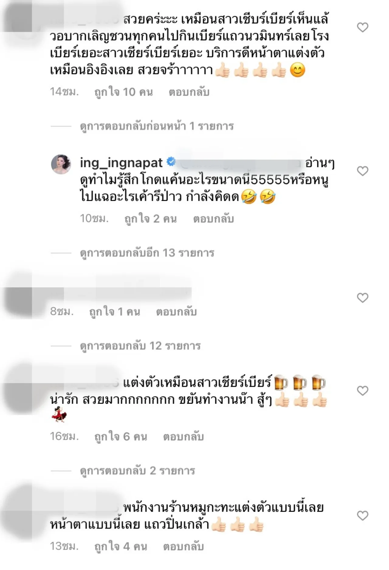 แต่ล่าสุด ทำเอาเจ้าตัวถึงกับสุดงง เมื่อมีชาวเน็ตรายหนึ่ง ตามคอมเมนต์ป่วนเป็นชุดใหญ่ไฟกะพริบ หลังจากที่เจ้าตัวใส่หมวกซานต้าถ่ายรูปและโพสต์ลงในอินสตาแกรมส่วนตัว ซึ่งชาวเน็ตคนดังกล่าวคอมเมนต์แรงว่า อิงอิงนั้นแต่งตัวเหมือนสาวเชียร์เบียร์ แต่งตัวเหมือนพนักงานร้านหมูกระทะ แต่งตัวแบบนี้และหน้าตาแบบนี้เลย