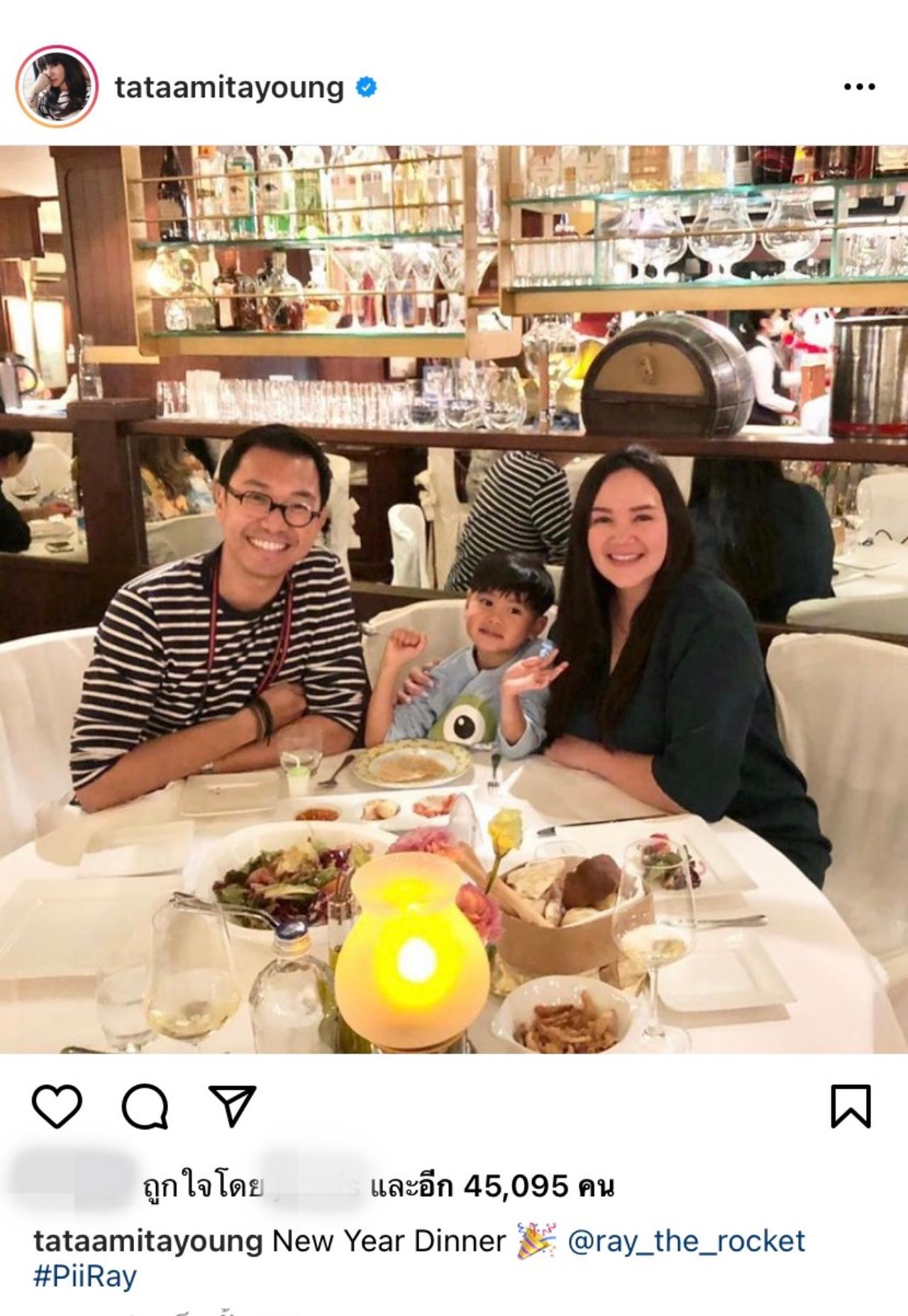 และล่าสุดก็ทำเอาแฟนๆ และคนรอบข้างถึงกับยิ้มไปด้วยเมื่อได้เห็นภาพในอินสตาแกรมของ ทาทา ยัง ที่เจ้าตัวได้โพสต์ภาพครอบครัว พร้อมหน้าพร้อมกันพ่อแม่ลูก ซึ่งเป็นการดินเนอร์กันแบบครอบครัว หลังจากที่ทาทาโพสต์ภาพดังกล่าวไป ก็มีมีแฟนๆ เข้าไปคอมเมนต์ส่งอีโมจิรูปหัวใจกันให้กับครอบครัวนี้กันอย่างมากมาย