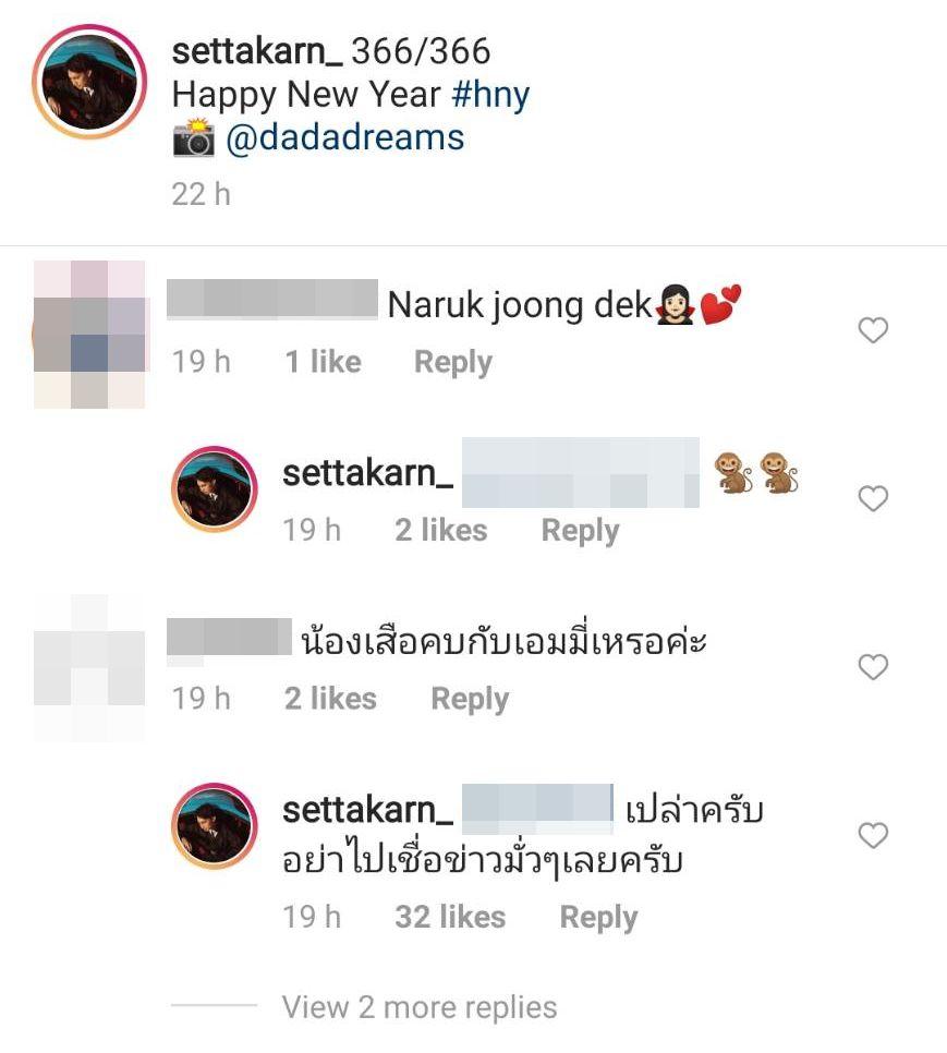 แต่แล้วก็ไม่ต้องสงสัยอีกต่อไป เพราะล่าสุดในไอจีของเสือก็ได้โพสต์ภาพตนเองกับวิวสวยๆ พร้อมทั้งเขียนข้อความอวยพรปีใหม่ และมีชาวเน็ตบางคนเข้าไปคอมเมนต์ถามตรงๆ ว่า “น้องเสือคบกับเอมมี่เหรอคะ” ก่อนที่เสือจะตอบกลับแบบชัดเจนว่า “เปล่าครับ อย่าไปเชื่อข่าวมั่วๆ เลยครับ” เรียกว่าตอบสั้นๆ แต่ชัดเจนจริงๆ จ้า.