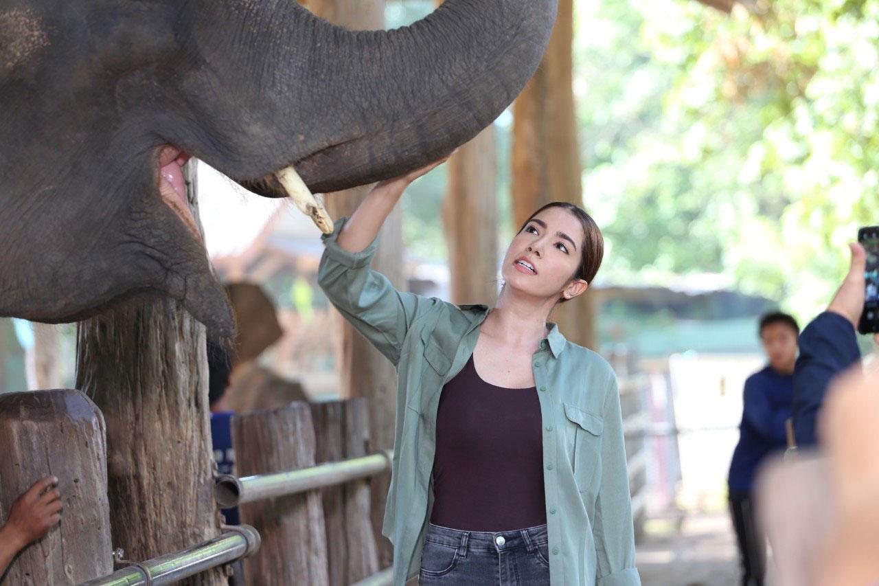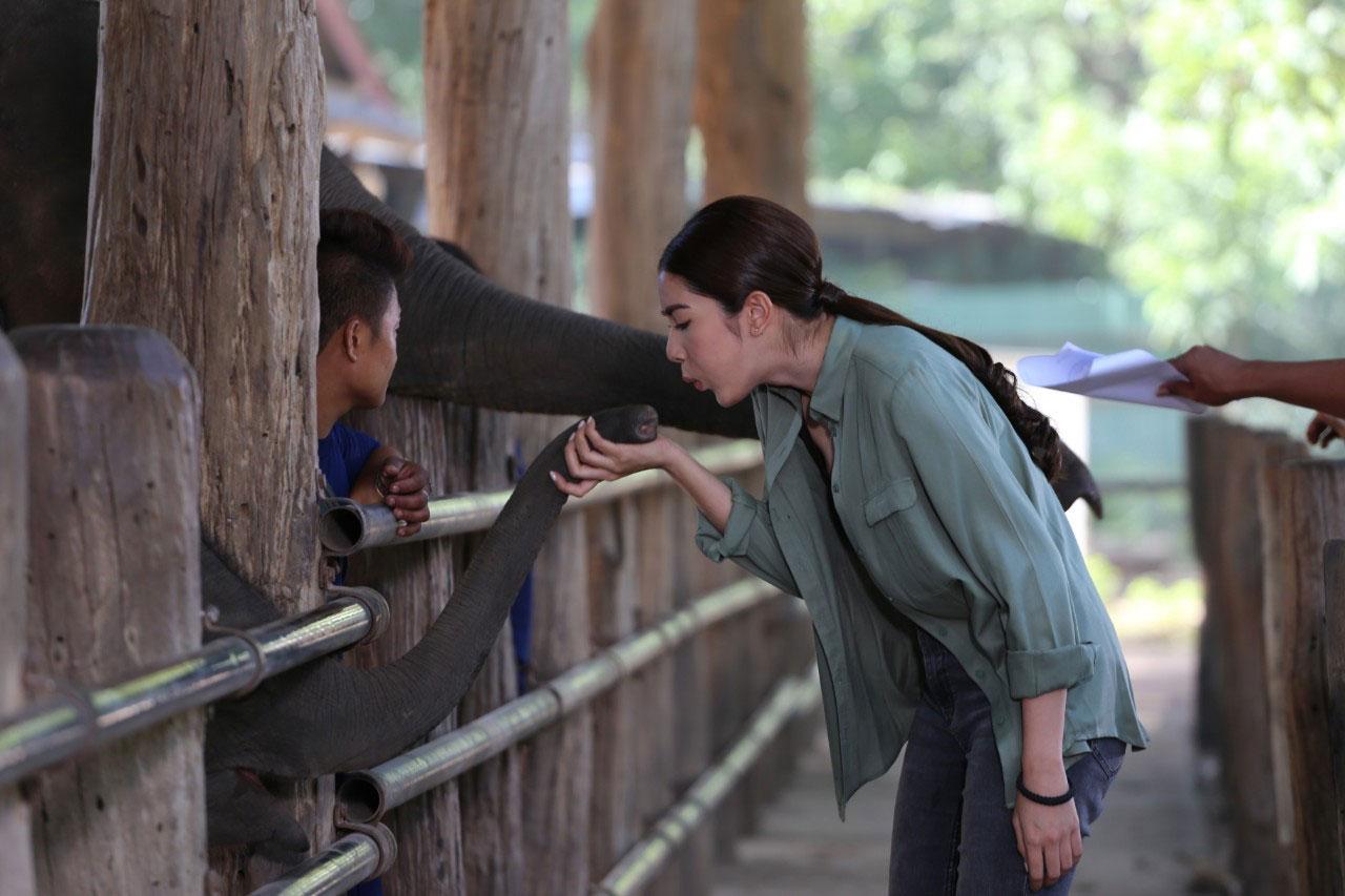ก่อนหน้านี้เกรซเคยทำงานด้านอนุรักษ์ช้างมา เราก็พอจะมีความคุ้นเคยกับนิสัยของเขาพอประมาณ แต่นั่นคือเราเจอเขาแบบอิสระ คือเขาจะเดินไปทางไหนก็ได้ จะนั่ง จะยืนตรงไหนก็ได้ แต่การที่เรามาถ่ายละครการร่วมงานกับเขาจะแตกต่าง เวลาเข้าฉากเราจะต้องพาให้ช้างมาอยู่ในจุดที่ถูกต้องในเรื่องของมุมกล้อง เขาจะต้องเดินอยู่ในกรอบที่กำหนดเอาไว้ ซึ่งทำให้เราเห็นเลยว่าช้างเป็นสัตว์แสนรู้ที่ฉลาดมากๆ ทำให้เราได้เห็นความน่ารักของเขาในมุมที่แตกต่างออกไปยิ่งทำให้เรารู้สึกประทับใจกับช้างมากขึ้น ส่วนการร่วมงานกับพี่เบน (สันติราษฎร์ กุลนพเกียรติ) แอบแซวก่อนนะคะว่าพี่เบนจะมีความเป็น แดดดี้ (หัวเราะ) คือไม่ใช่ว่าพี่เบนแก่นะคะ แต่พี่เบนจะมีความเป็นผู้ชายที่ดูอบอุ่น ละมุน ดูปกป้องและดูแลทุกๆ คนได้ ในกองก็เลยจะมีฉายาให้พี่เขาว่าแดดดี้ ซึ่งต้องบอกว่าคาแรกเตอร์จริงๆ ของพี่เขาพอมาเป็นตัวละคร ทั้งกฤษดา และนายกริช ทำให้ทุกอย่างดูแตกต่างไป