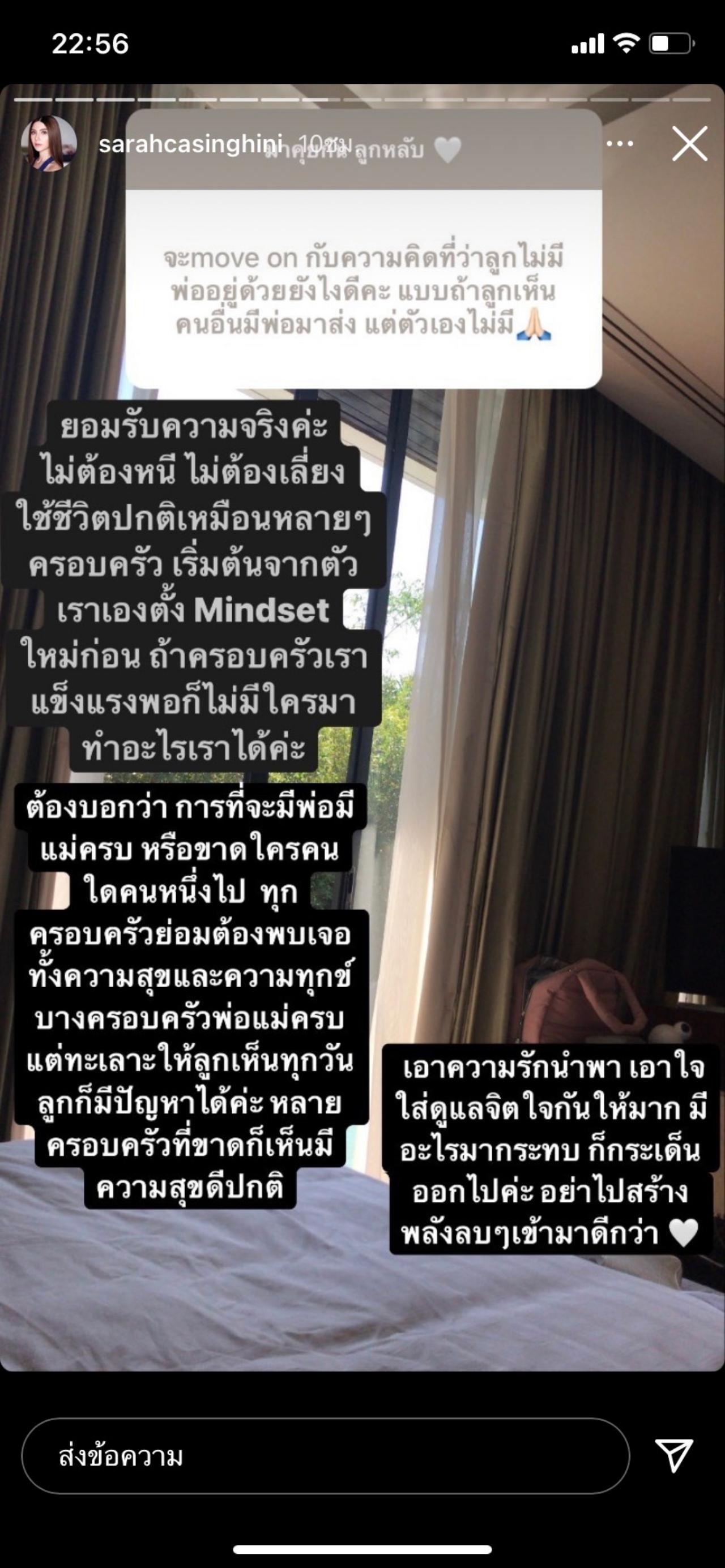 ว่างๆ จากการเลี้ยงลูกทั้ง 2 คน คุณแม่คนสวย ซาร่า คาซิงกินี ก็มักจะมาเล่นถามตอบในไอจีสตอรี่กับแฟนๆ ที่มักจะส่งคำถามเข้ามาถามซาร่ากันมากมาย และเรื่องล่าสุด ที่ซาร่าถูกแฟนๆ ส่งคำถามเข้ามาให้ตอบมีเรื่องที่บอกว่า จะบอกลูกมั้ยว่าใครเป็นพ่อ และจะมูฟออนอย่างไรกับความคิดที่ว่าลูกไม่มีพ่ออยู่ด้วย ซึ่งมีคนส่งคำถามมาว่า