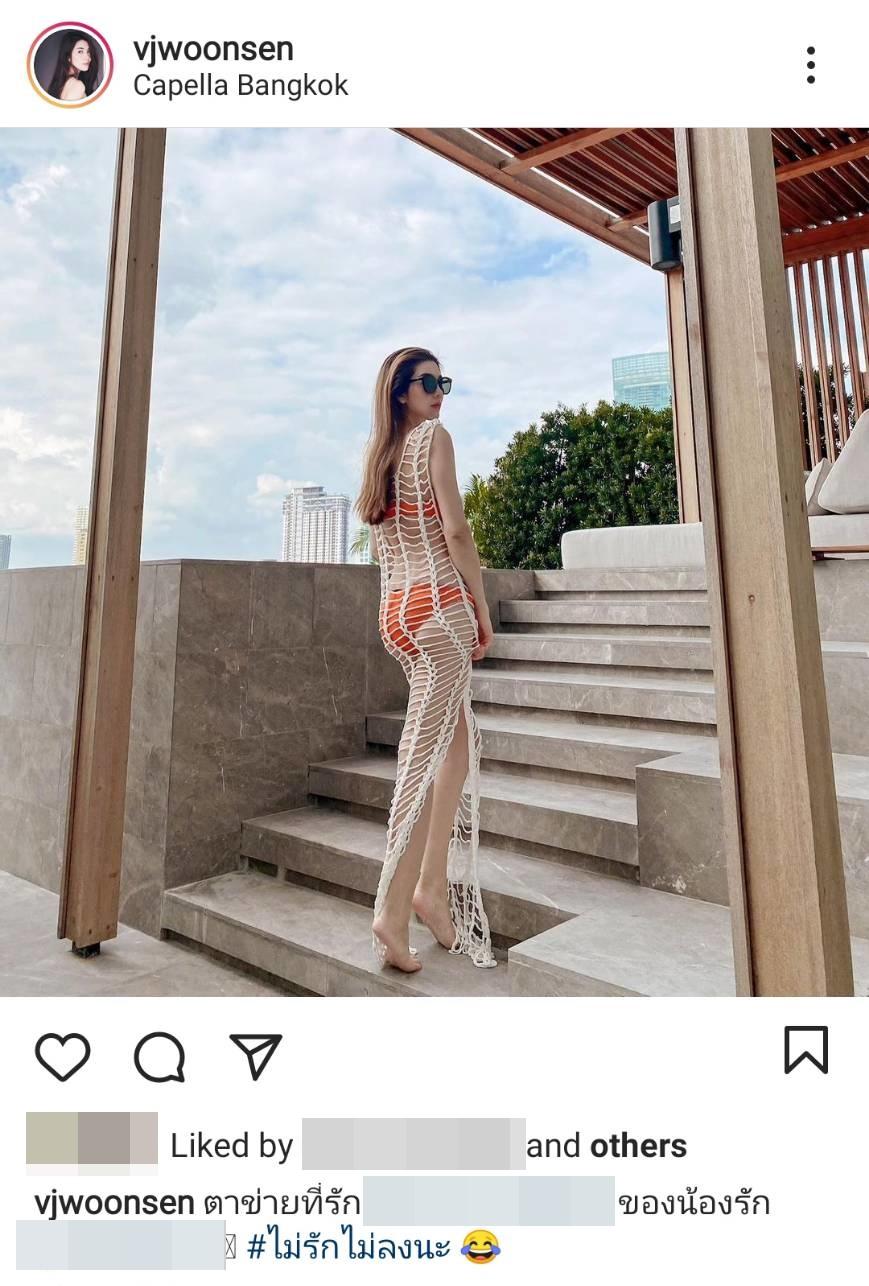 ล่าสุด วุ้นเส้น วิริฒิพา โพสต์ภาพตัวเองในชุดว่ายน้ำบิกินีสีส้มสดใส และยิ่งเพิ่มความแซ่บมากขึ้นไปอีกด้วยชุดคลุมตาข่าย ที่เผยให้เห็นส่วนเว้าส่วนโค้งชัดเจนมากยิ่งขึ้น แม้จะเห็นแค่ข้างหลังก็เซ็กซี่ เห็นแล้วว้าวจริงๆ