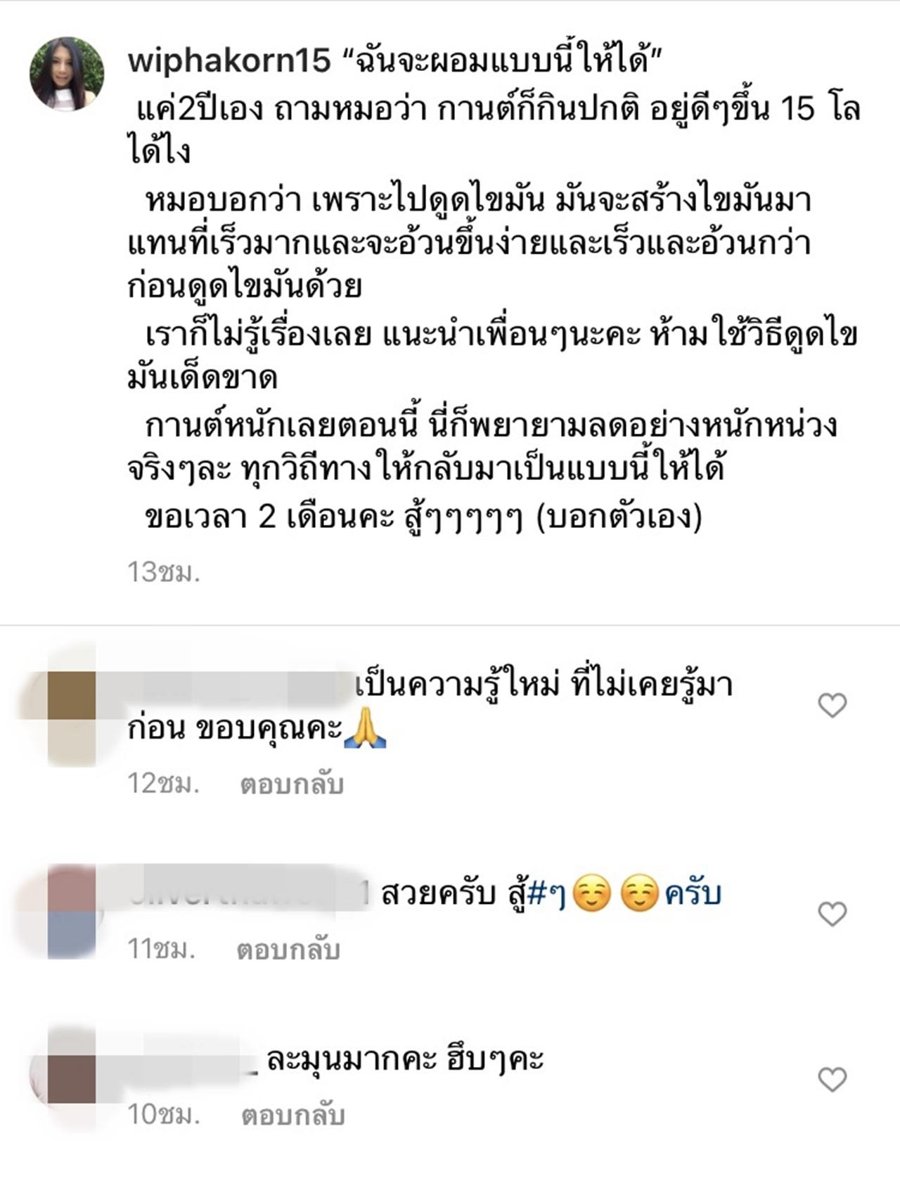 เราก็ไม่รู้เรื่องเลย แนะนำเพื่อนๆ นะคะ ห้ามใช้วิธีดูดไขมันเด็ดขาด กานต์หนักเลยตอนนี้ นี่ก็พยายามลดอย่างหนักหน่วงจริงๆละ ทุกวิถีทางให้กลับมาเป็นแบบนี้ให้ได้ ขอเวลา 2 เดือนคะ สู้ๆๆๆๆๆ (บอกตัวเอง)"