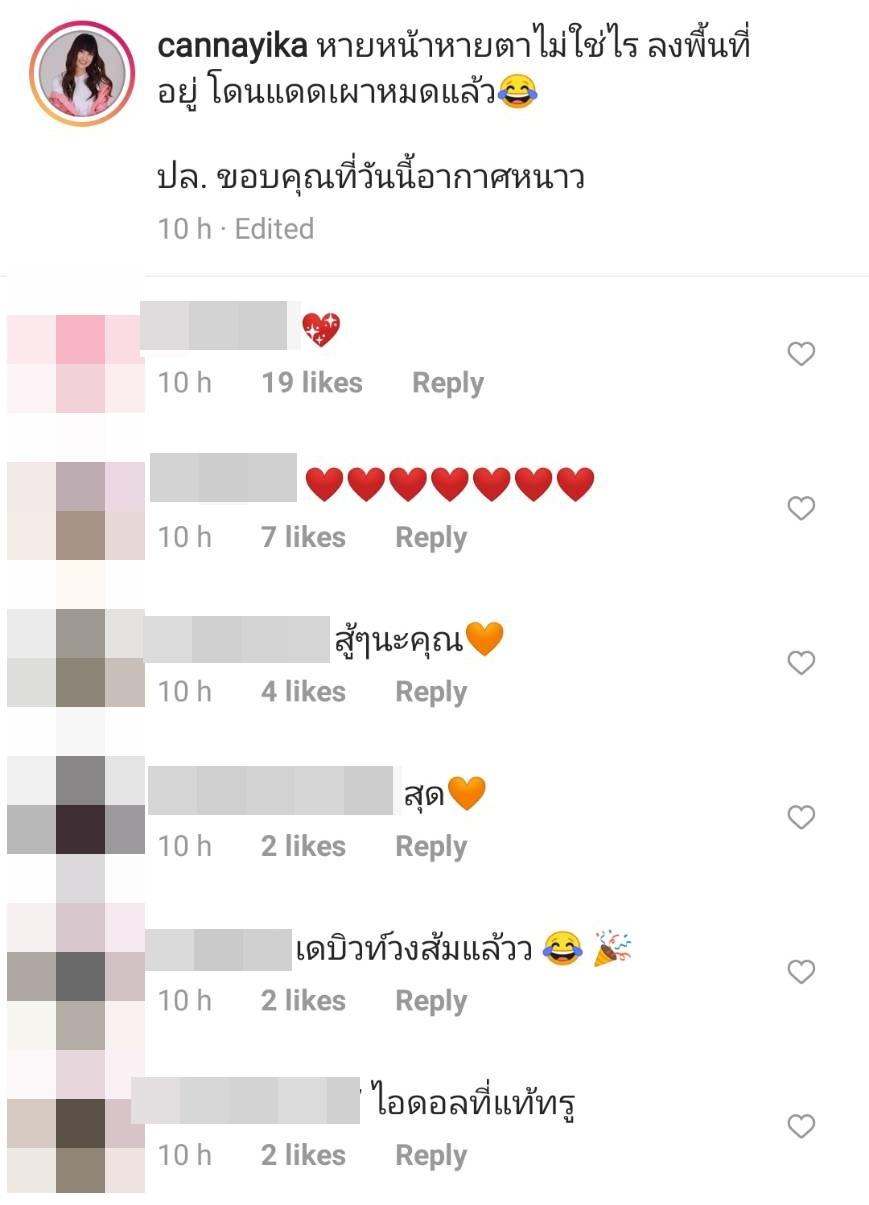 ทำเอาแฟนๆ ที่ติดตามไอจีต่างพร้อมให้กำลังใจบอกให้สู้ๆ บ้างก็บอกว่าแววว่าที่ ส.ส.เริ่มเปล่งประกาย ยินดีที่ได้รู้จักแคนแคนในเวอร์ชั่นนี้ ฯลฯ