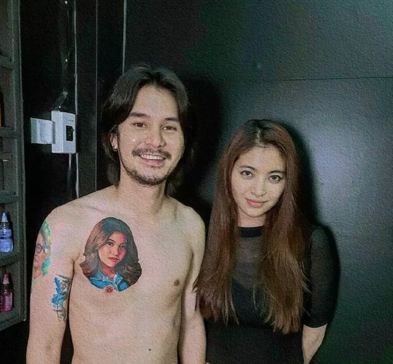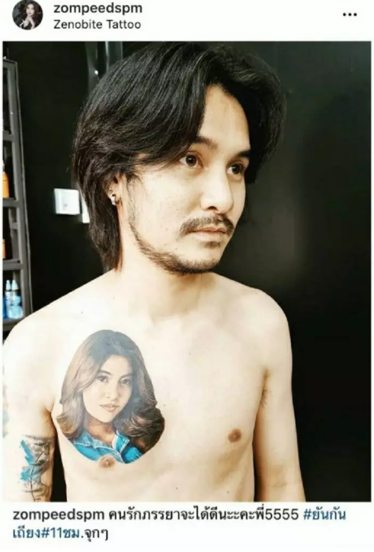 เนื่องจากหนุ่มอาร์ตี้ได้ไปสักรูปใบหน้าภรรยาสุดที่รักบนหน้าอกของตัวเอง และสาวส้มภรรยาของหนุ่มอาร์ตี้ก็ได้เผยรอยสักดังกล่าวลงในอินสตาแกรม พร้อมระบุแคปชั่นว่า “คนรักภรรยาจะได้ดีนะคะพี่5555 #ยันกันเถียง #11ชม.จุกๆ”