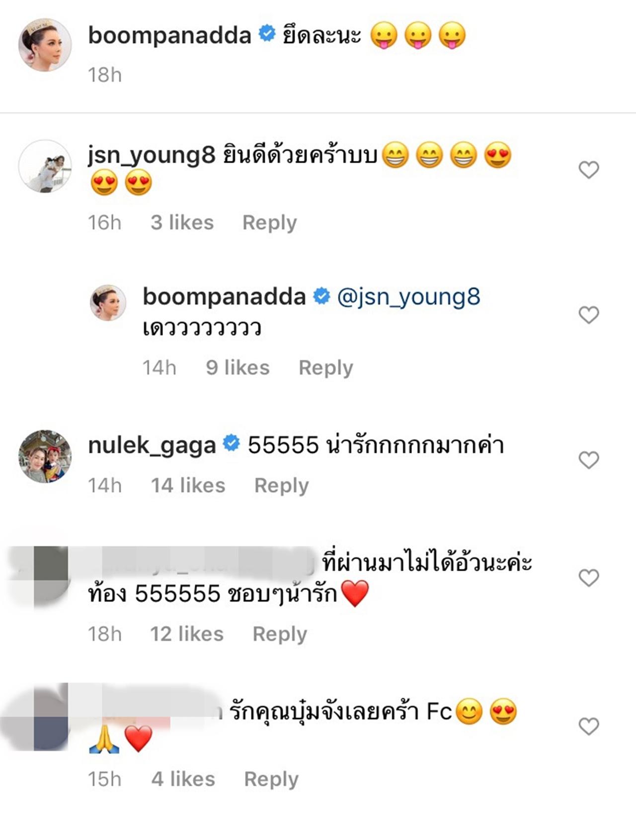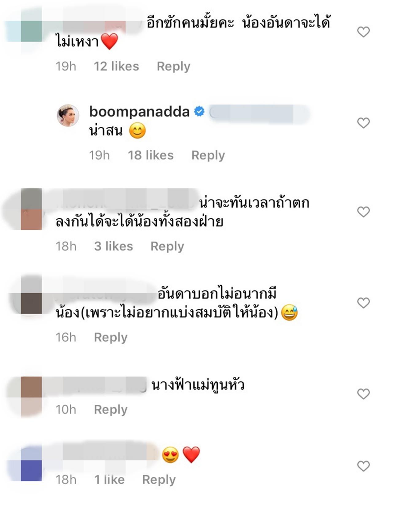 ทำเอาแฟนๆ ที่ติดตามต่างเข้ามาคอมเมนต์เชียร์สนั่นให้มีอีกสักคน น้องอันดาจะได้ไม่เหงา เจ้าตัวก็เข้ามาตอบกลับทันทีว่า "น่าสน" ในขณะที่ เจสัน ยัง ก็อดไม่ได้ที่จะเข้ามาคอมเมนต์ร่วมแสดงความยินดี และ บุ๋ม ปนัดดา ก็รีบตอบกลับว่า "เดวววววววว" งานนี้เรียกได้ว่าทำเอาแฟนคลับต่างเชียร์และลุ้นรอฟังข่าวดีกันเลยจ้า.