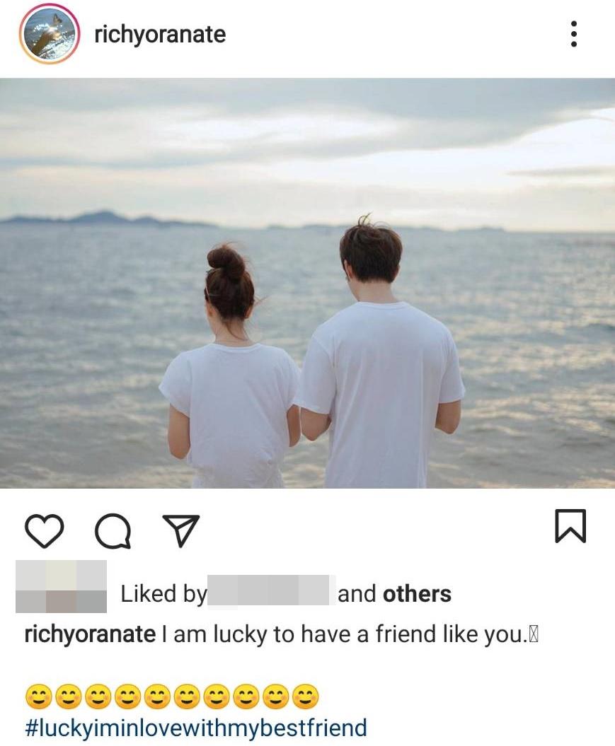 ล่าสุดก็ถึงคราวของสาวริชชี่ ที่ขอเป็นฝ่ายเปิดตัวออกสื่อกับความสัมพันธ์ครั้งนี้บ้าง โดยเจ้าตัวได้โพสต์ภาพคู่กับก็อต เป็นภาพขณะยืนหันหลัง อยู่ริมทะเลที่ทั้งคู่เคยไปเที่ยวด้วยกัน แถมยังใส่เสื้อคู่สีขาวเหมือนกันอีก พร้อมกับแคปชั่นและแฮชแท็กทำเอาเขินหนักมาก โดย ริชชี่ ได้เขียนไว้ว่า "I am lucky to have a friend like you. #luckyiminlovewithmybestfriend"