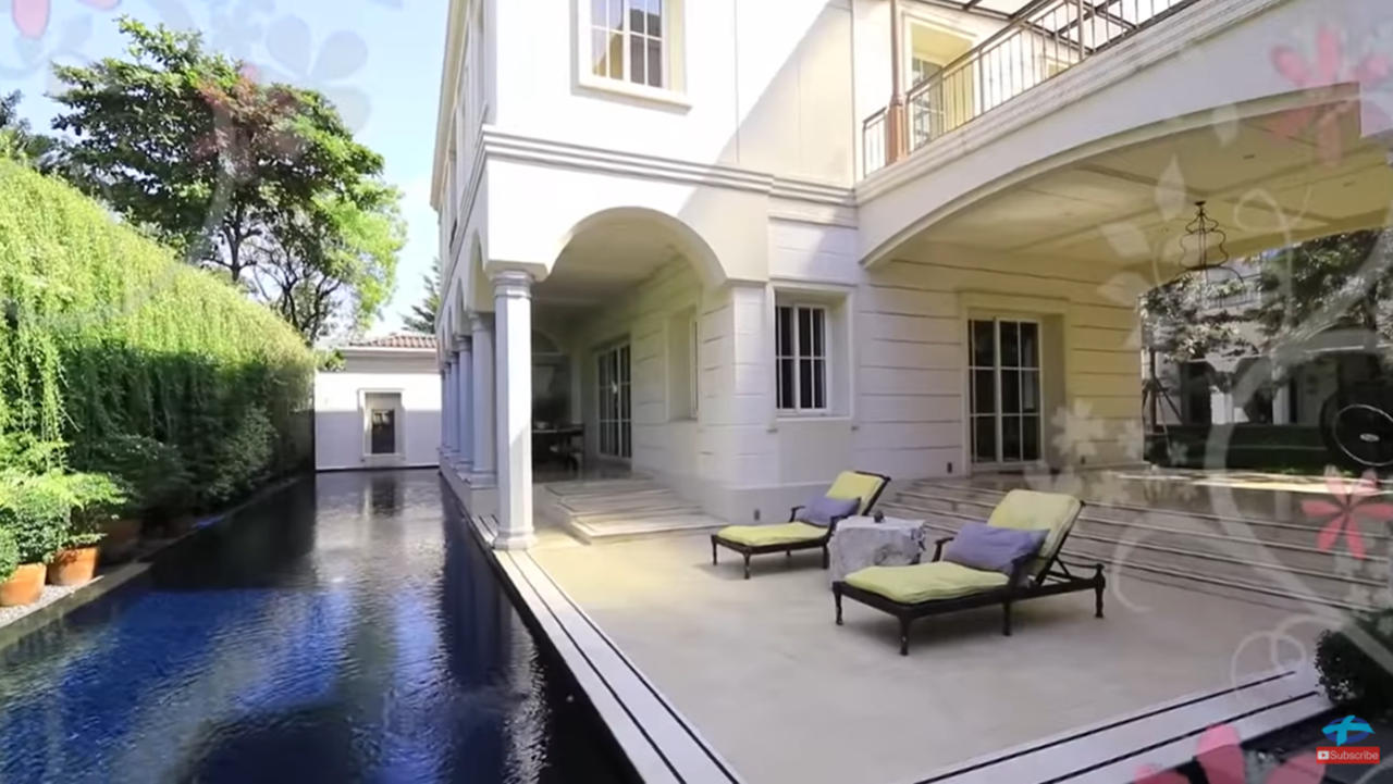 แถมเต็มไปด้วยเฟอร์นิเจอร์สุดหรูมากมาย ให้อารมณ์ผู้ดีอังกฤษนิดๆ อีกทั้งรอบบ้านยังมีสวนสวยๆ และมีสระว่ายน้ำให้สมาชิกในบ้านได้พักผ่อน เรียกได้ว่าหรูหราราวคฤหาสน์เลยทีเดียว