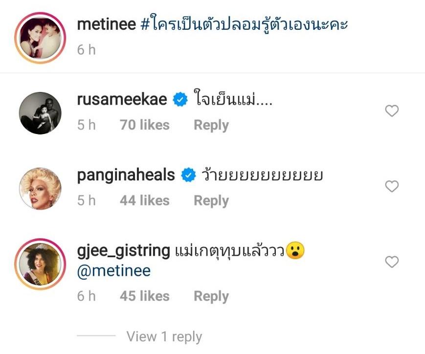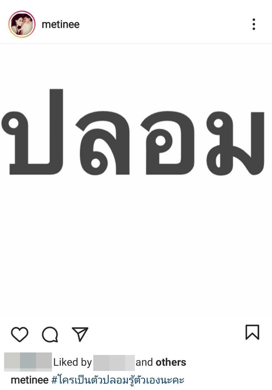 ทำเอาเพื่อนๆ ในวงการบันเทิง รวมถึงแฟนๆ ของนางแบบ-เมนเทอร์ตัวแม่สุดแซ่บ ลูกเกด เมทินี กิ่งโพยม ตกใจไปตามๆ กัน เมื่อเจ้าตัวโพสต์ภาพคำว่า “ปลอม” ลงในไอจีส่วนตัว @metinee พร้อมทั้งเขียนแคปชั่นเป็นแฮชแท็กสุดจี๊ด “#ใครเป็นตัวปลอมรู้ตัวเองนะคะ”