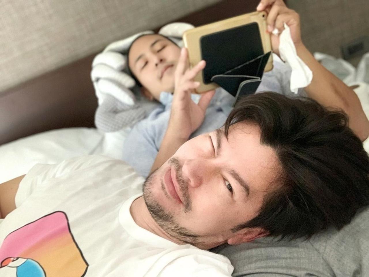 อ้น : จบนะ เป็นน้อง จริงๆ เรียกเป็นลูกก็ได้ มีคนถามมา เพราะว่าไปเที่ยวด้วยกันมา ไปกับครอบครัว แล้วก็นอนกับน้องแบบนี้ (เอียงไปซบ) ถ่ายรูปกัน คือบ้านเราเลี้ยงกันแบบนี้ ตอนเด็กๆ เราโตมาเรารักกัน