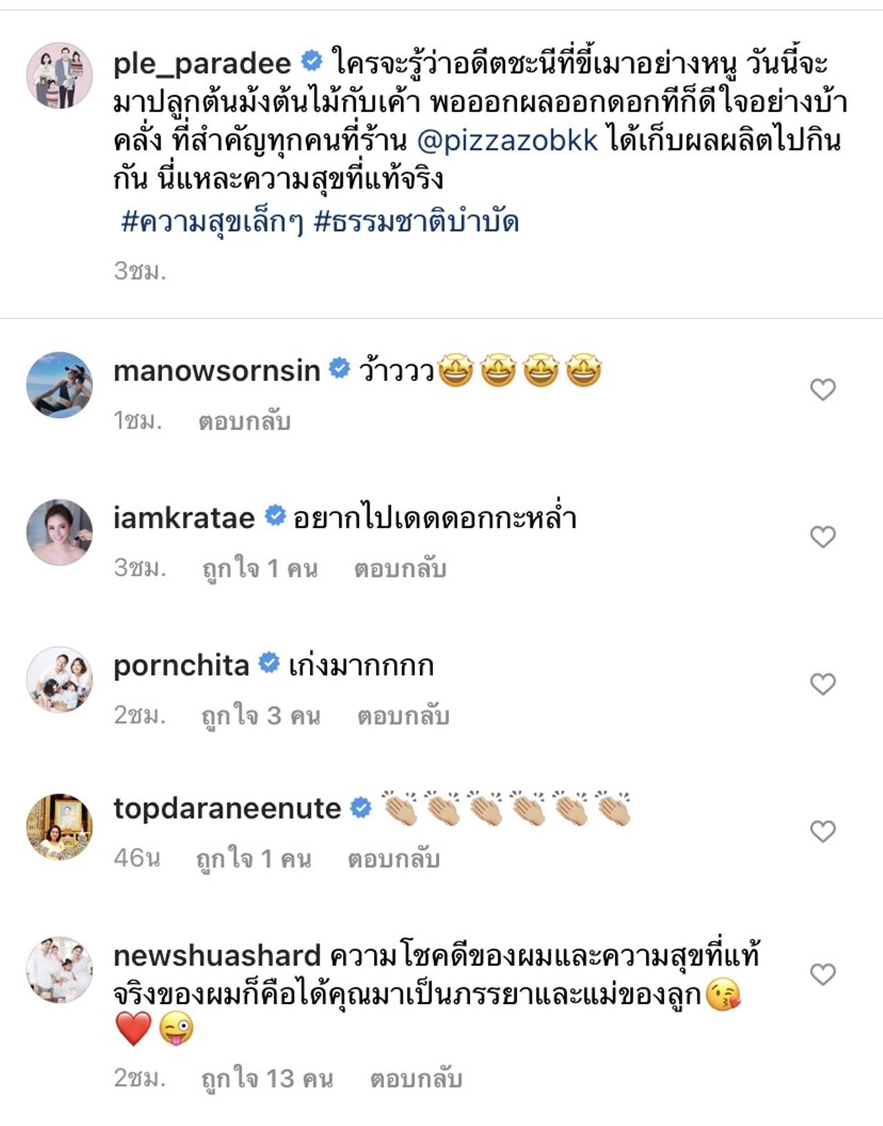 และนอกจากสามีสุดที่รักจะเข้ามาคอมเมนต์ชมแล้ว งานนี้ เพื่อนทั้งในและนอกวงการ รวมไปถึงแฟนๆ ก็เข้ามาคอมเมนต์ชมในฝีมือการปลูกผักของ เปิ้ล ภารดี เป็นจำนวนมากอีกด้วย