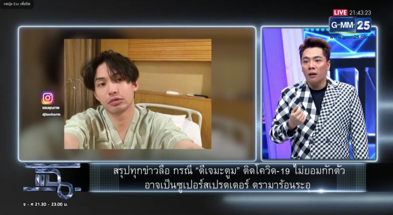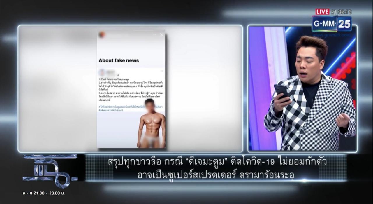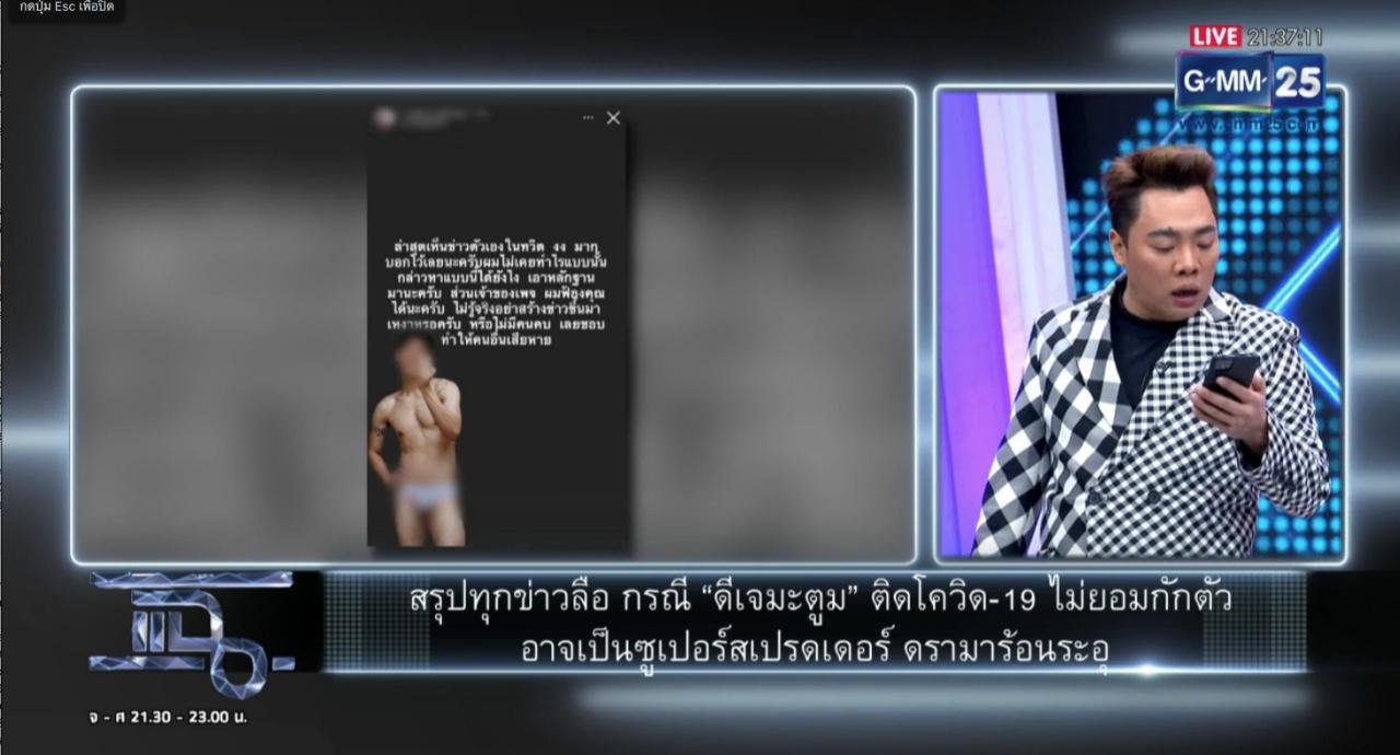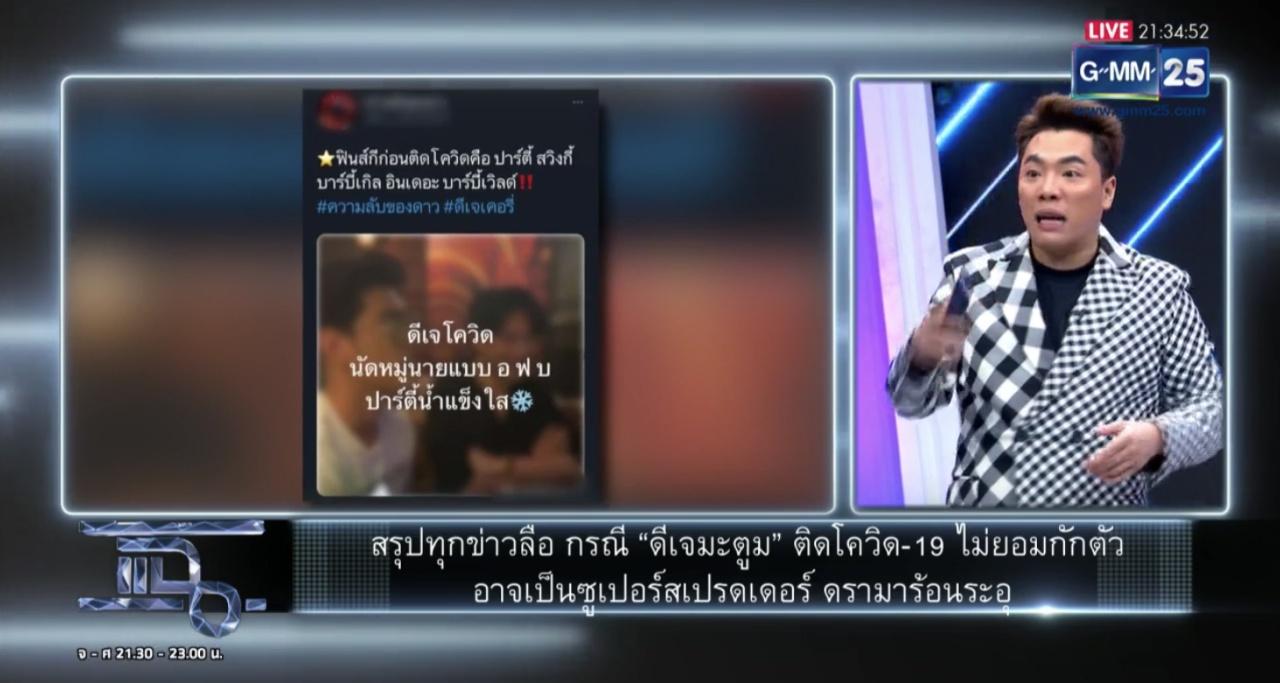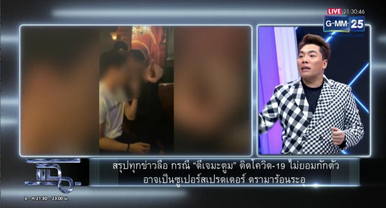 มดดำ ยังเผยถึงโลกออนไลน์มีการแชร์ไทม์ไลน์ของ “บอย” เพื่อนดีเจมะตูม ว่าเป็นการกักตัวที่ไม่ได้กักตัว ออกไปตระเวนหลายที่ ไทม์ไลน์ของบอย วันที่ 1-4 ม.ค. ไปเที่ยวสถานบันเทิงเชียงใหม่ เมื่อหลับจากเชียงใหม่ ไปตรวจเชื้อแล้วไม่พบเชื้อ