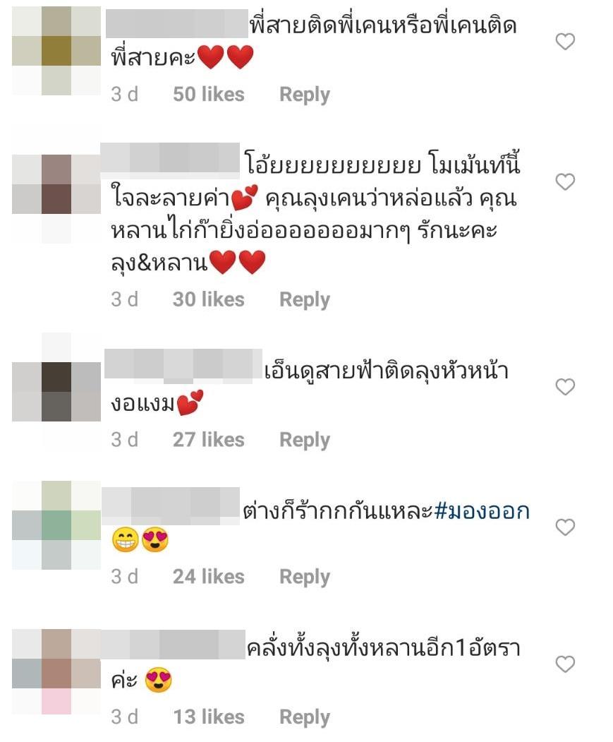 ทำเอาแฟนๆ แห่คอมเมนต์แซวหนักมาก อาทิ พี่สายติดพี่เคนหรือพี่เคนติดพี่สายคะ, เอ็นดูสายฟ้าติดลุงหัวหน้างอแงม, ต่างก็ร้ากกกันแหละ#มองออก, คลั่งทั้งลุงทั้งหลานอีก1อัตราค่ะ ฯลฯ นอกจากนี้มีชาวเน็ตแซวว่า “พี่หน่อยมีเพิ่มเองสัก 1 อัตราไหมคะ” ก่อนที่หน่อย บุษกร จะตอบกลับว่า “พอก่อนคร้า”.