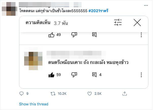 บ้างก็งงว่าคอนเซปต์เอ็มวีคืออะไร เดี๋ยวดอกไม้ โฮโลแกรม เดี๋ยวอินเดีย ความอินเดียกับอาหรับต่างกันมาก ดูเอ็มวีแล้วเวียนหัวมาก ภาพไม่คมชัด แสงไม่สวย ซีจีไม่เนียน บ้างก็บอกว่าให้ลองปรับความเร็วการเล่นเพลงเป็น 1.25 จะดีกว่ามาก บางคนก็บอกว่ารู้สึกเสียงของมิลลิตอนแรกจะโดดออกมาแบบแปลกๆ ฯลฯ และด้วยกระแสวิจารณ์อย่างหนัก ส่งผลให้มิวสิกวิดีโอเพลงนี้ยอดวิวพุ่งกว่า 2.5 ล้านวิว กลายเป็น 1 ในมาแรงของยูทูบไปแล้ว อีกทั้งแฮชแท็ก #2021ราตรี ติดเทรนด์ทวิตเตอร์อันดับ 1 ด้วย.