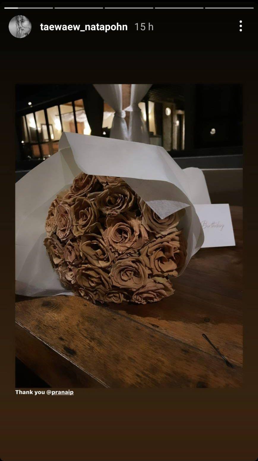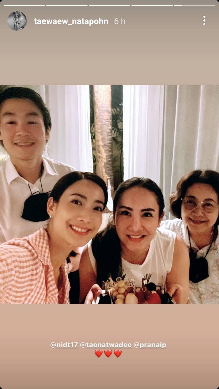 โดย แต้ว ณฐพร โพสต์ภาพช่อดอกไม้ลงไอจีสตอรี่ พร้อมทั้งเขียนขอบคุณและแท็กไปที่ไอจีหนุ่มคนสนิทอย่างไฮโซหนุ่ม ณัย ประณัย พรประภา รวมทั้งรีโพสต์รูปคู่และรูปถือเค้กในไอจีสตอรี่ของไฮโซณัย ก่อนจะโพสต์ภาพหมู่กับไฮโซณัย รวมถึง คุณแม่นิด รวงทอง และ เต๋า ณัฐวดี พี่สาว ที่มาร่วมฉลองวันเกิดของแต้วแบบเรียบง่ายพร้อมหน้าพร้อมตา